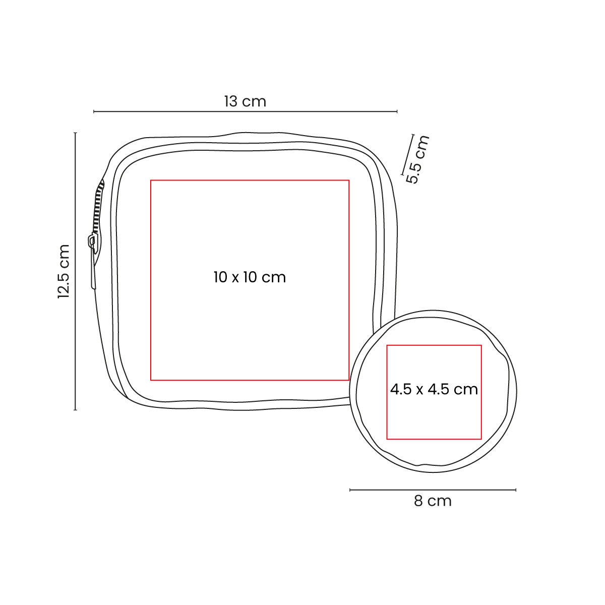 Metodo: Serigrafía Area: 4.5 x 4.5 cm Pad 10 x 10 cm Estuche |