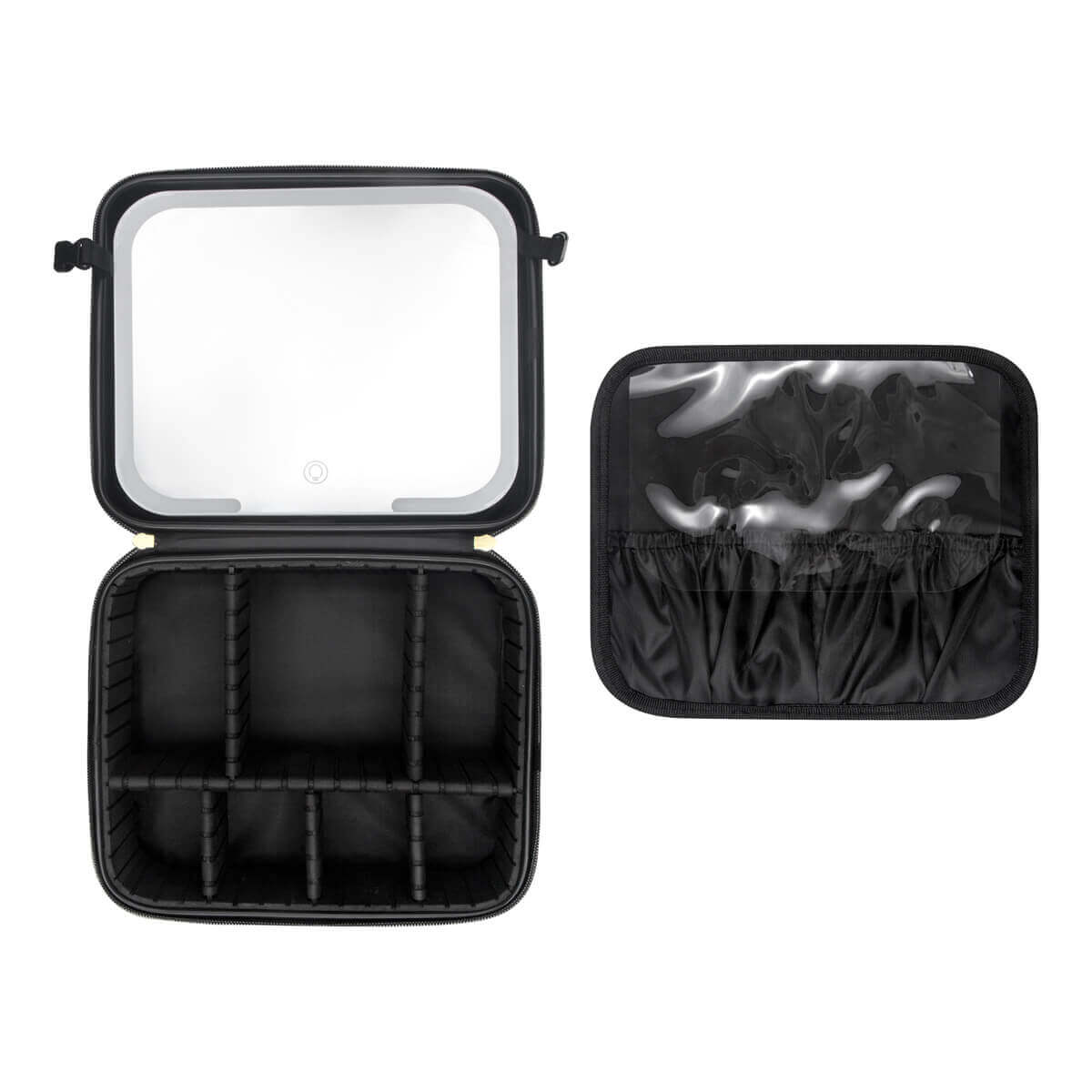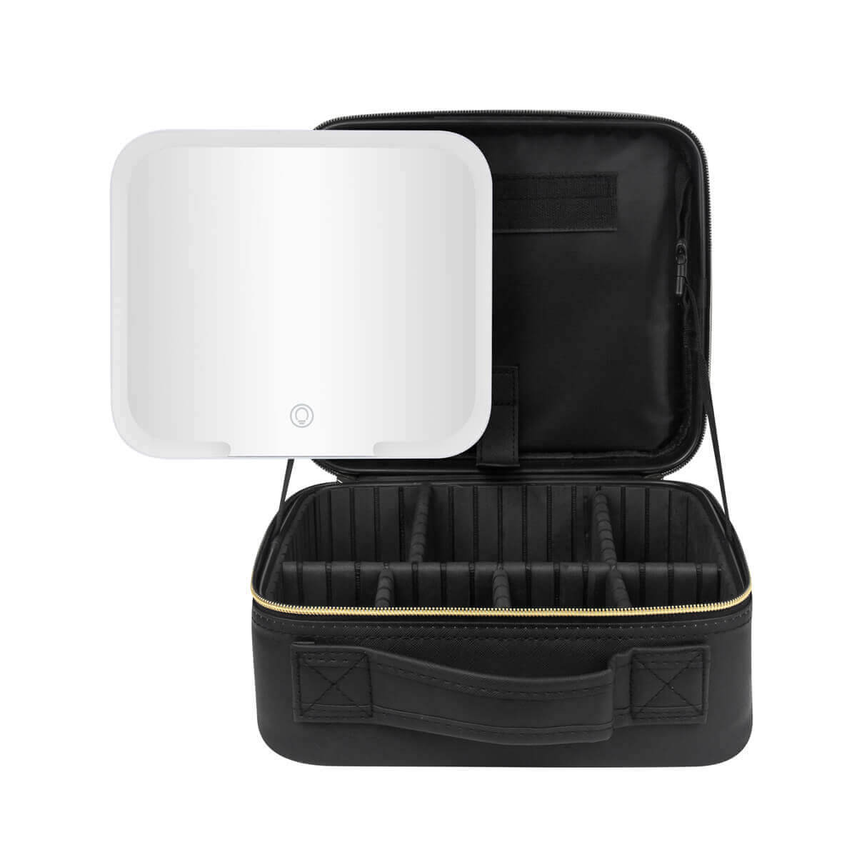 Descripción del producto: Organizador de maquillaje y brochas. En su interior contiene un amplio espejo de iluminación LED con 3 modos de luz: fría, natural y cálida, las cuales cambian pulsando el botón del sensor táctil one touch. Duración de luz 2 hrs. Puerto de carga tipo C. Incluye cable de carga tipo C. |