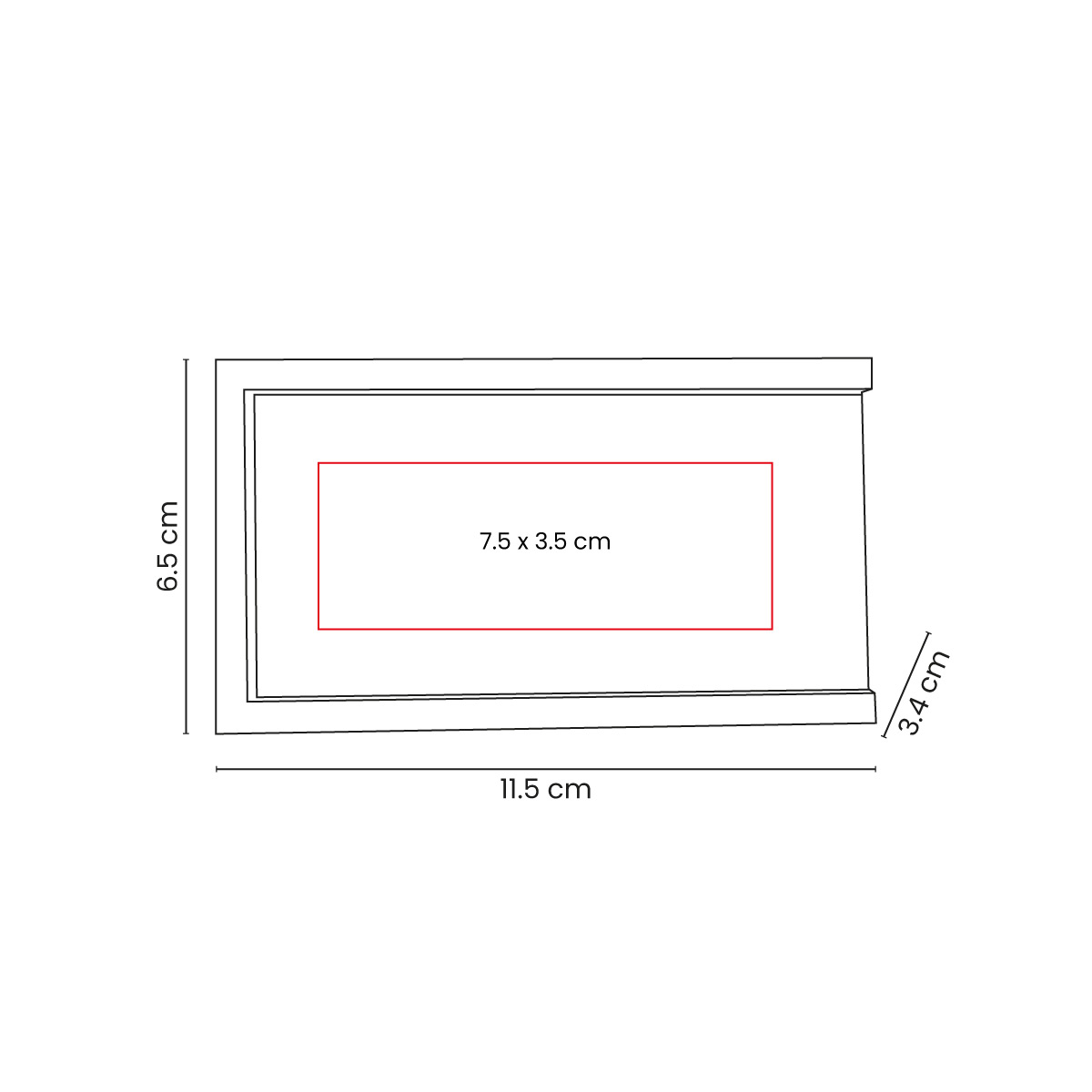 Metodo: Serigrafía / Láser / Tampografía Area: 7.5 x 3.5 cm |