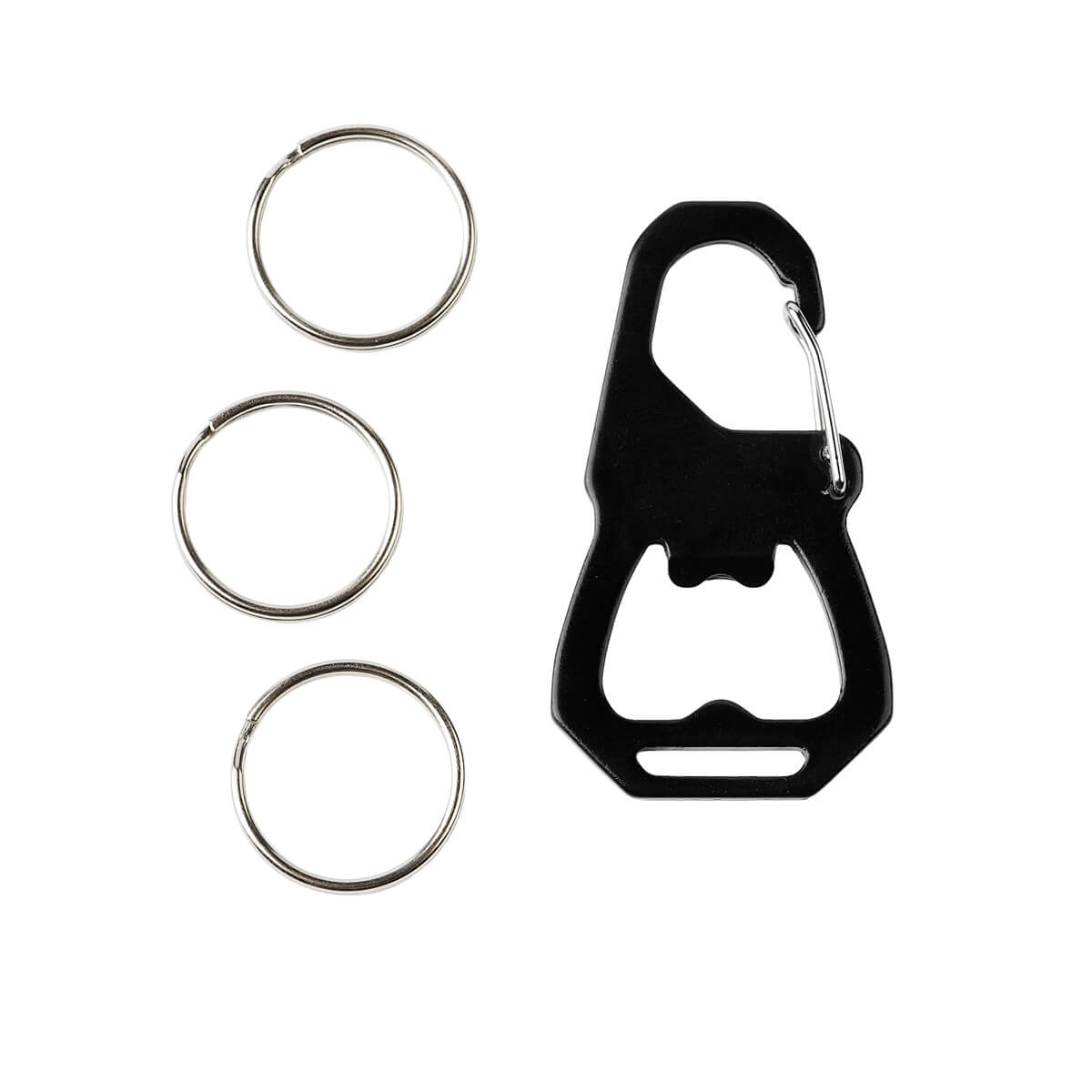 Descripción del producto: Llavero metálico multifunción con gancho, destapador y tres aros para llaves. Organiza y transporta tus llaves con un accesorio práctico y de uso diario. |