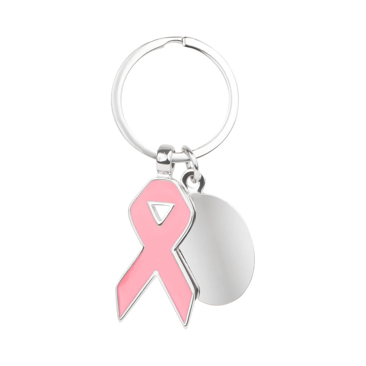 Descripción del producto: Llavero metálico con diseño en forma de listón rosa y placa redonda para grabado. Símbolo de apoyo y concientización del cáncer de mama. Personalízalo con una fecha especial, un nombre o el mensaje que desees. Además de mantener tus llaves organizadas, es un accesorio elegante, significativo y funcional. |