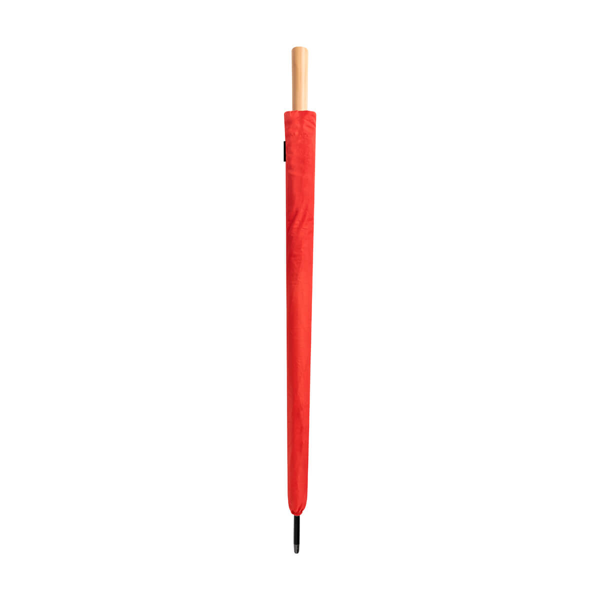 Descripción del producto: Paraguas de 8 paneles con apertura automática. fabricado en plástico reciclado (RPET). Cuenta con mango y punteras de madera. Incluye funda protectora. |