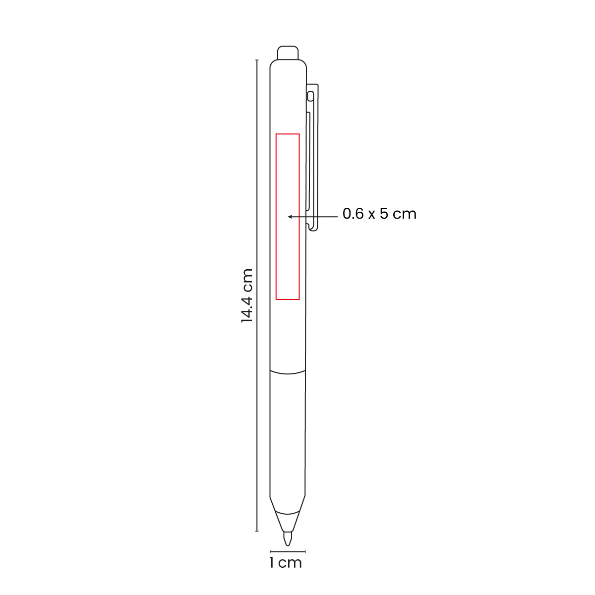 Descripción del producto: Bolígrafo de plástico con grip de silicón antiderrapante. Mecanismo pulsador. |