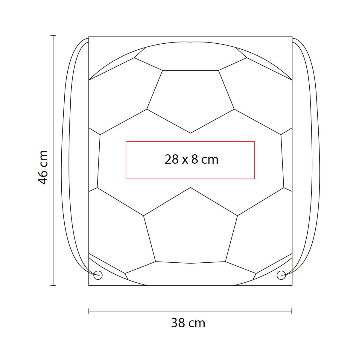Descripción del producto: Bolsa-mochila con diseño de balón de fútbol. |