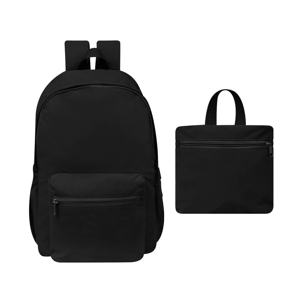 Descripción del producto: Mochila mágica con diseño multifuncional. Su bolsillo frontal te permite plegar toda la mochila, haciéndola compacta y fácil de guardar. Fabricada en nylon texturizado y suave al tacto. Cuenta con un compartimento principal con cierre, bolsillo interno y 2 bolsillos laterales con elástico. Incluye asa superior para transportar en mano y asas acolchadas con correas ajustables para mayor comodidad. |