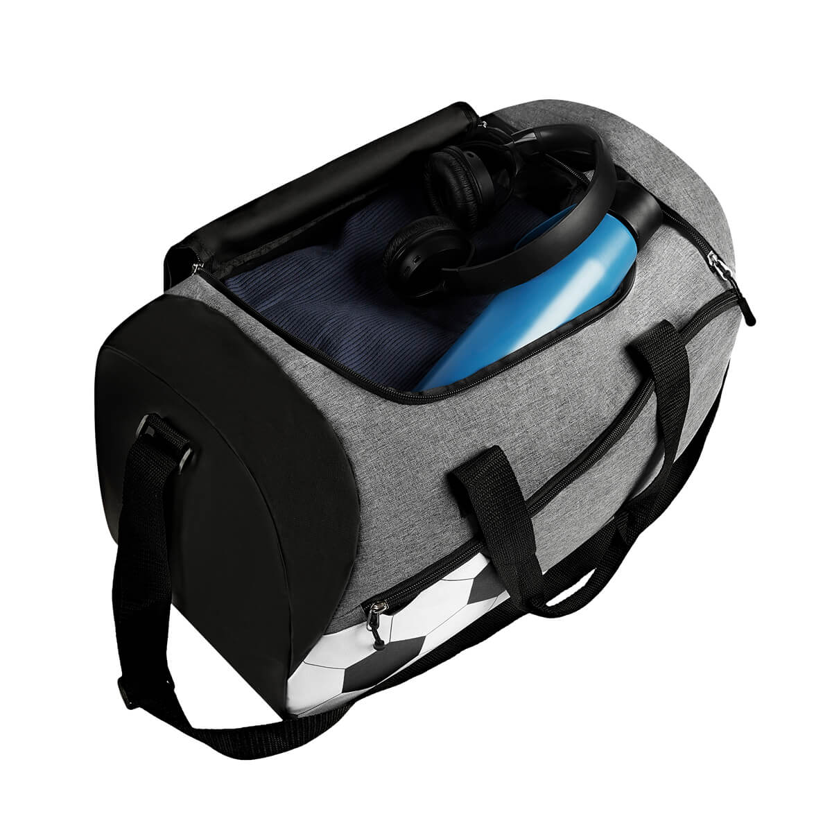 Descripción del producto: Maleta deportiva. Compartimento principal con cierre y un bolsillo adicional en la parte frontal. Además, cuenta con un compartimento lateral para calzado. Incluye correa ajustable para hombro y asas de agarre superior. |