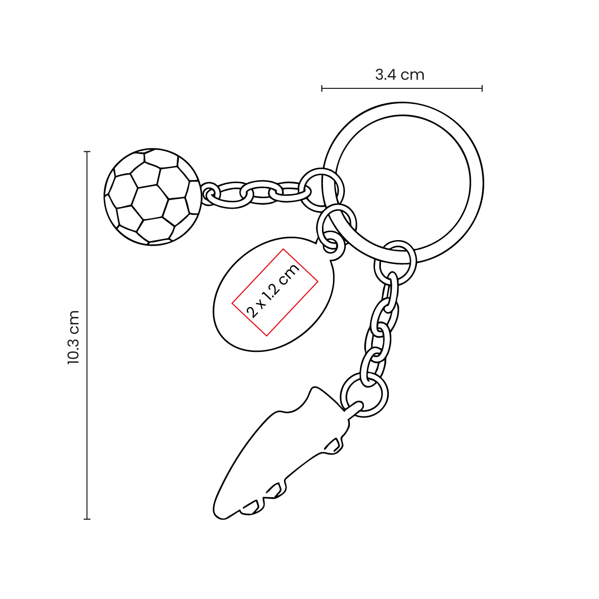 Descripción del producto: Llavero metálico de fútbol soccer. Incluye placa para grabado, 1 dije de zapato soccer y 1 dije de balón. Su diseño evoca el espíritu deportista y la pasión por el fútbol. |