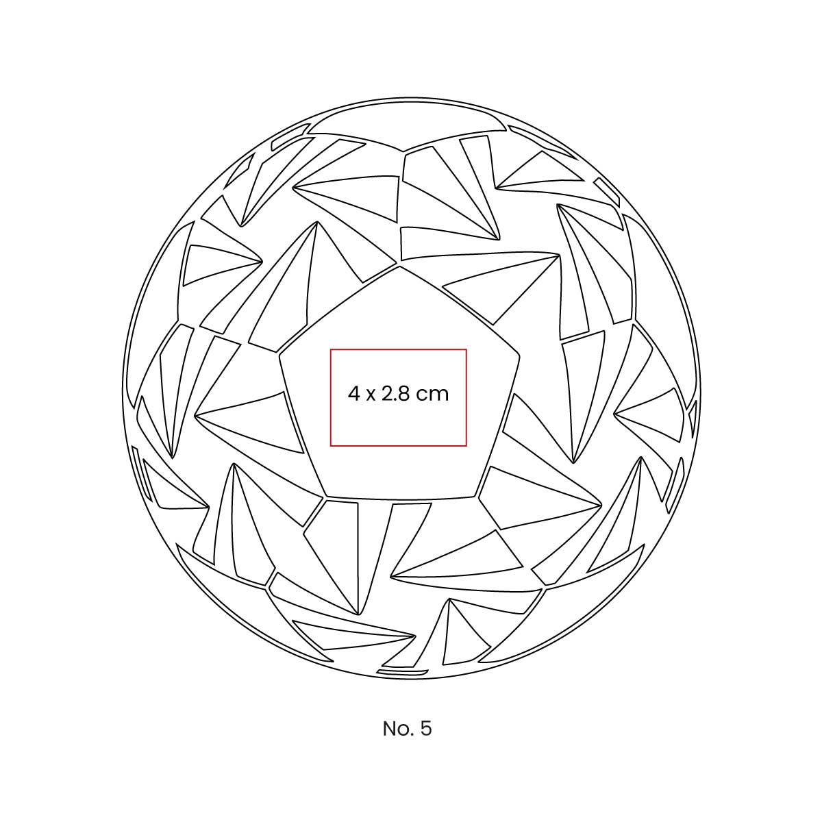 Descripción del producto: Balón de fútbol No. 5 con 35 gajos. Peso 400 gr. Cosido a máquina. Nivel máximo de presión 6-8 psi. Capa especial de PVC. |