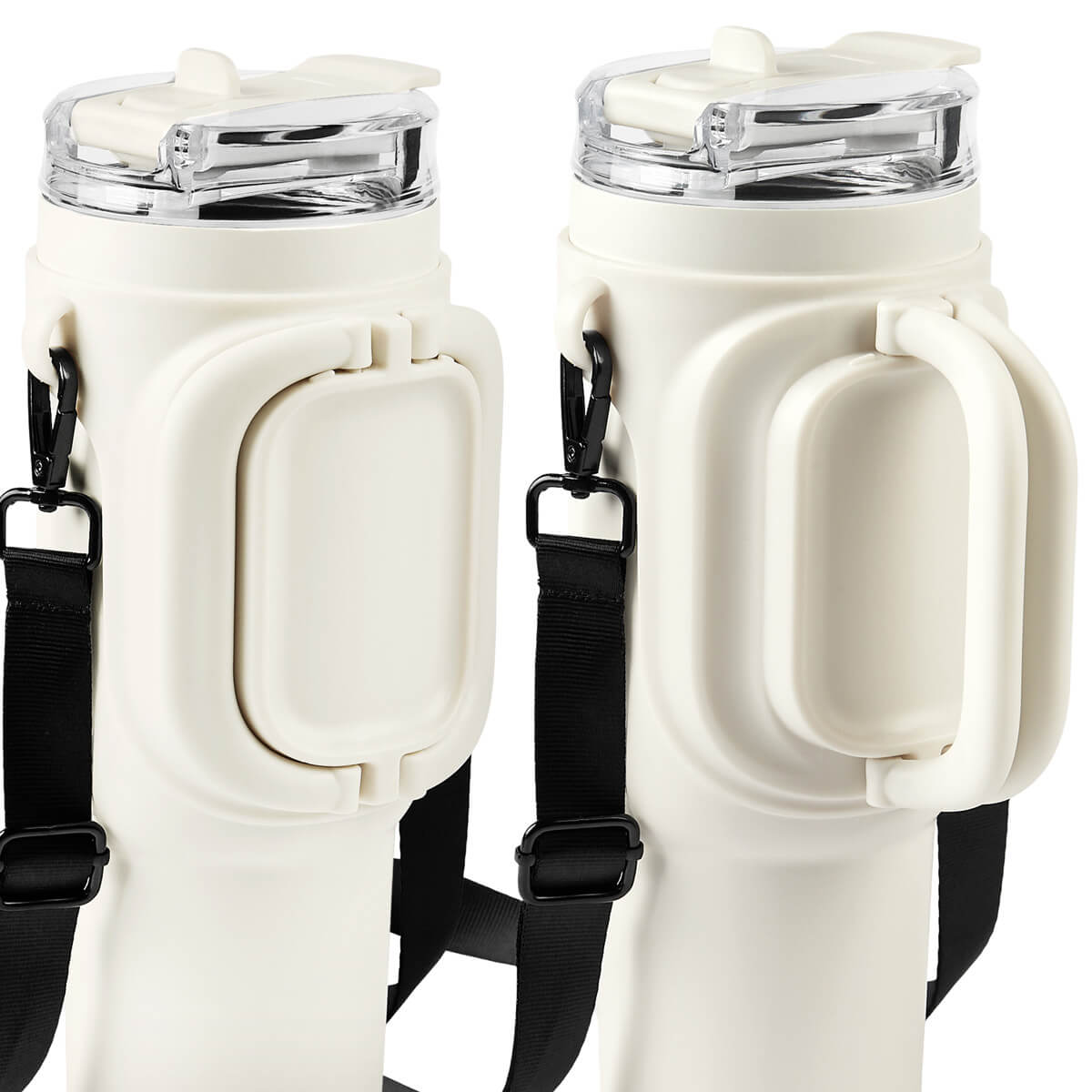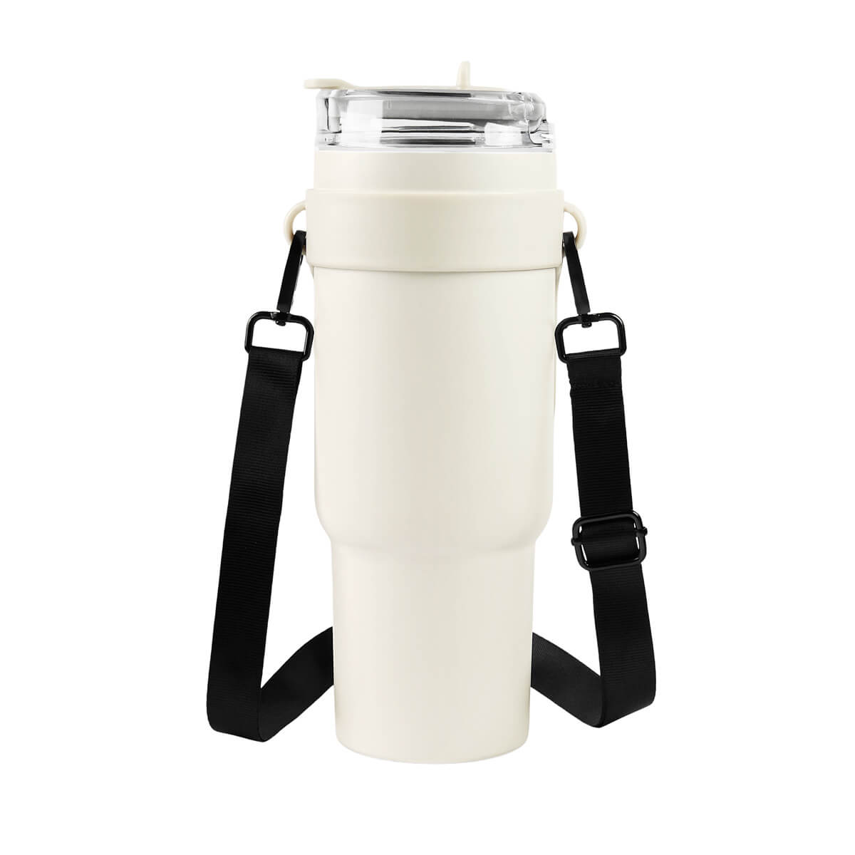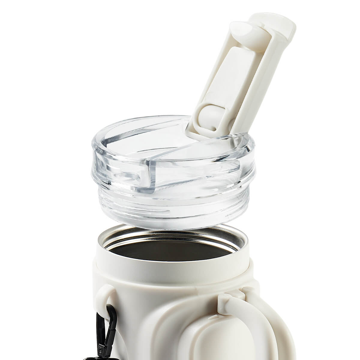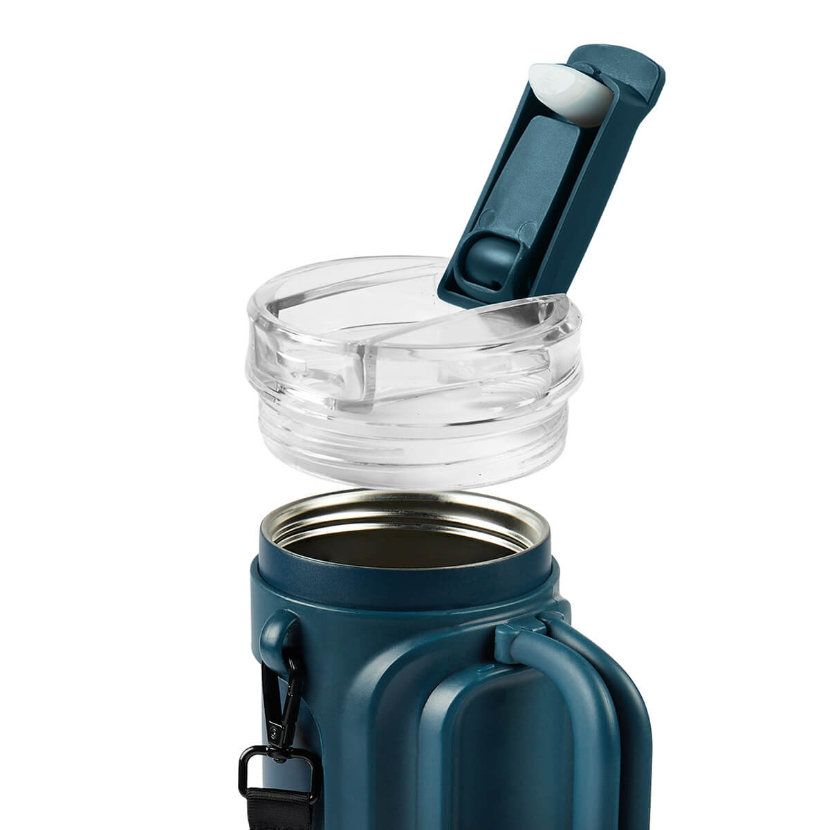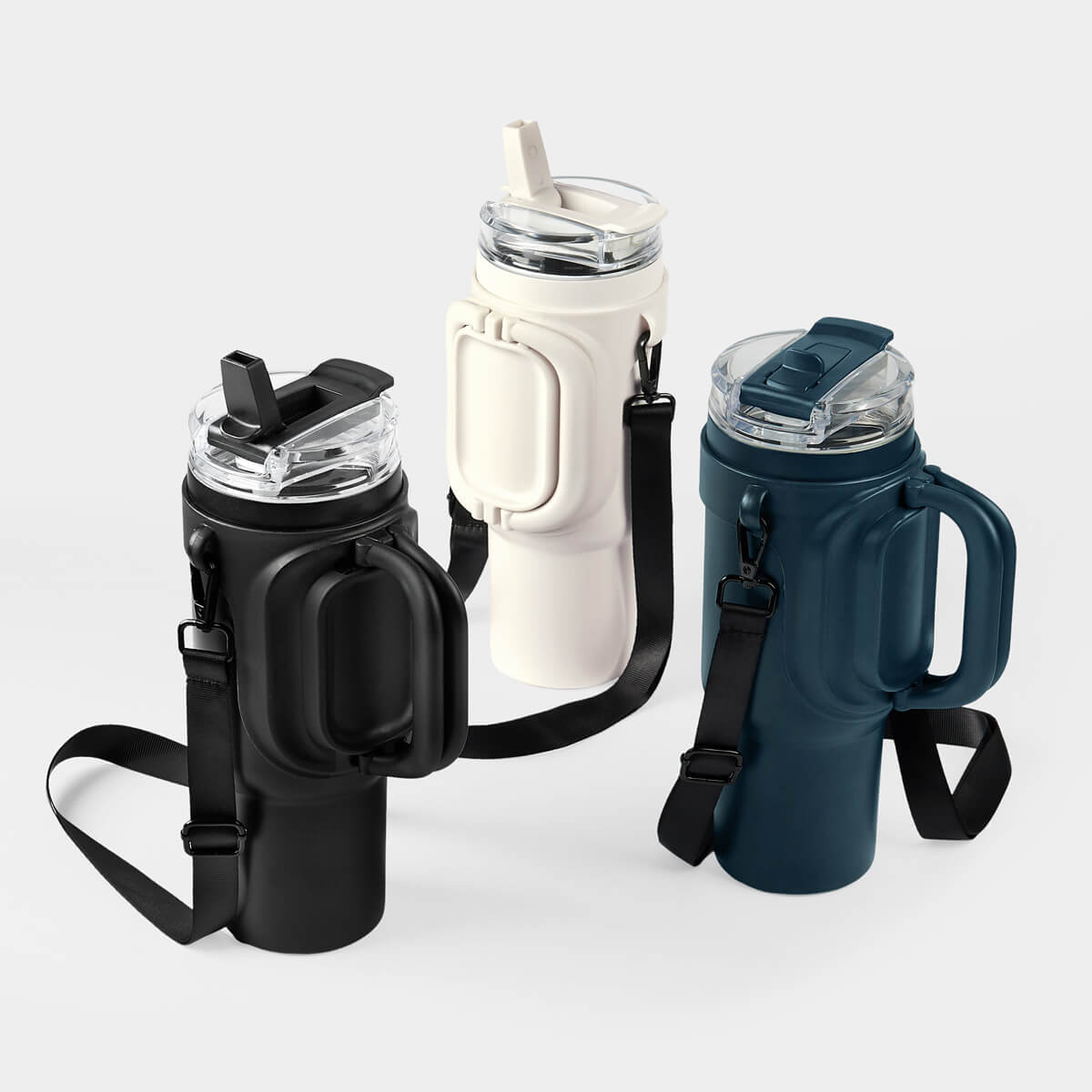 Descripción del producto: Termo doble pared. Cerrado al vacío. Pared interna y externa de acero inoxidable. Terminado rugoso que facilita su agarre. Incluye tapa de plástico con sistema de rosca y la sobretapa mulitfuncional, permite beber por medio de su boquilla clásica o a través de su boquilla plegable con popote. Su diseño innovador incorpora un asa plegable para un uso más práctico y un asa para hombro ajustable y removible, con broches metálicos. Mantiene las bebidas calientes hasta por 6 hrs y frías hasta por 8 hrs. Capacidad de 30 Oz. Base de 7.4 cm de diámetro. Incluye caja individual. |