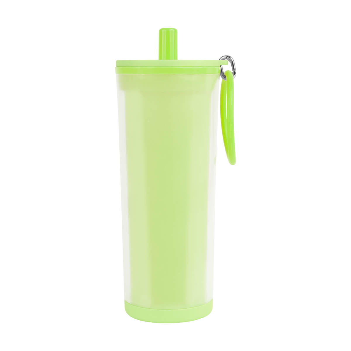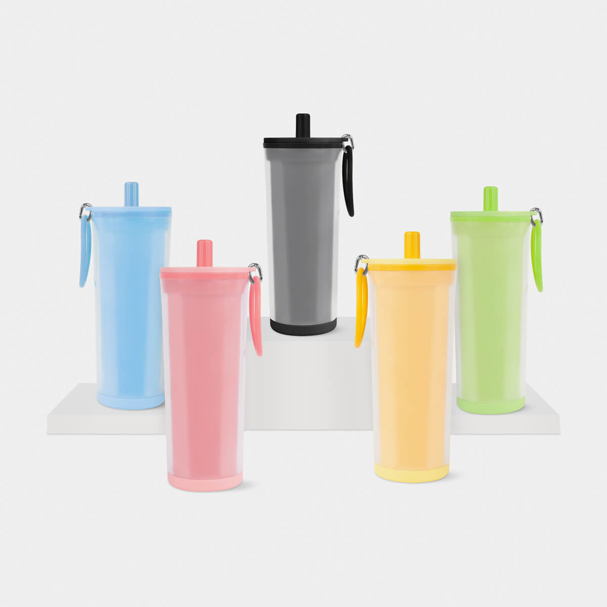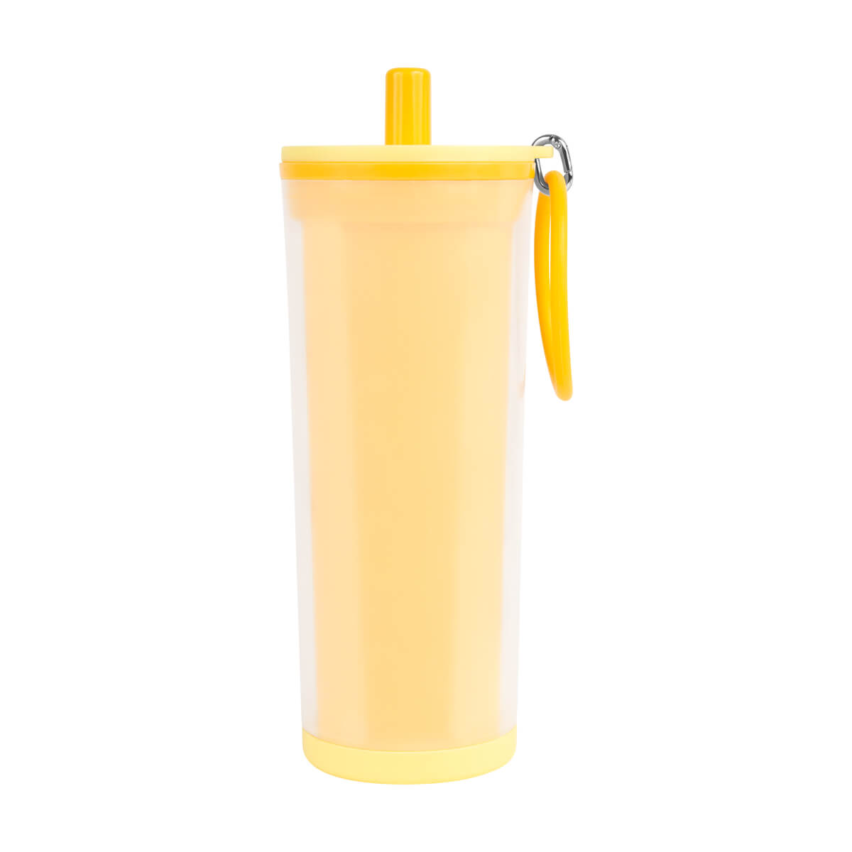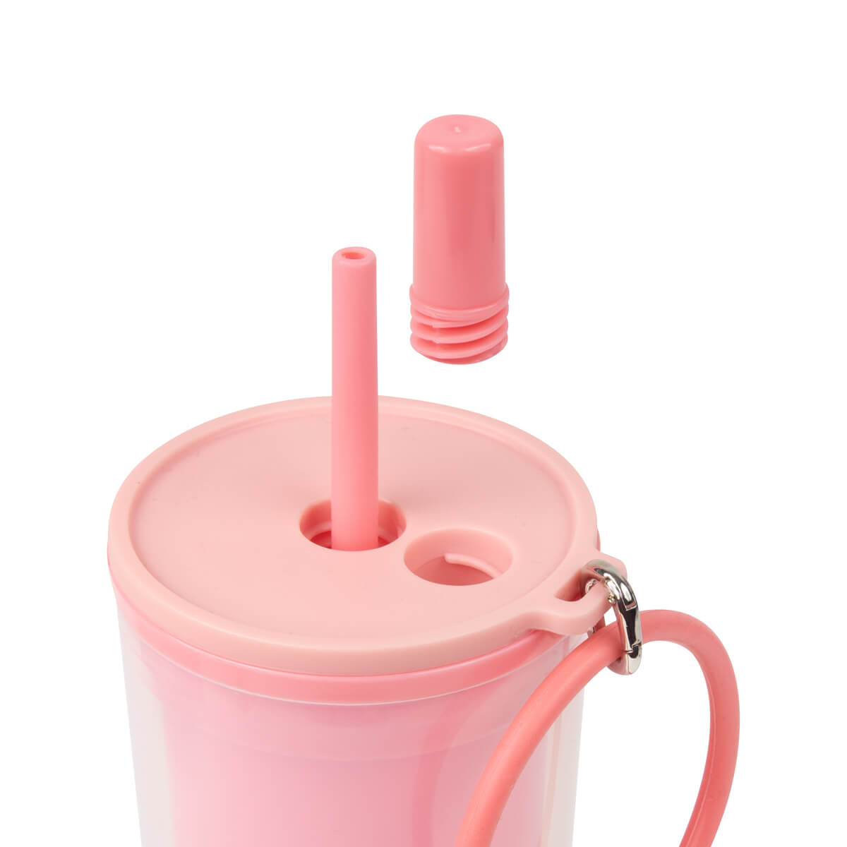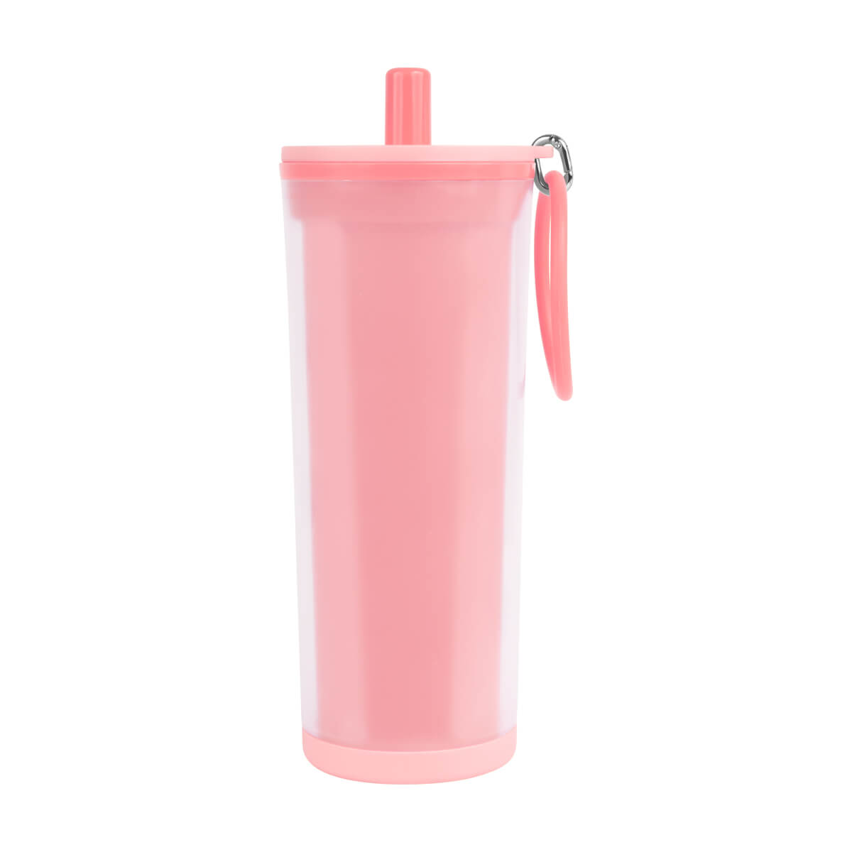 Descripción del producto: Vaso de plástico de doble pared. Pared interna de plástico a color y externa de plástico transparente. Tapa con cierre de rosca. Incluye popote y asa con forma de aro. Capacidad 16 Oz. Incluye caja individual. |