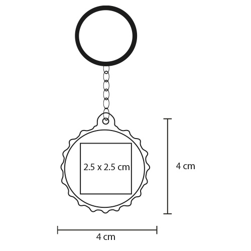 Descripción del producto: Llavero metálico con destapador en forma de corcholata y aro. |