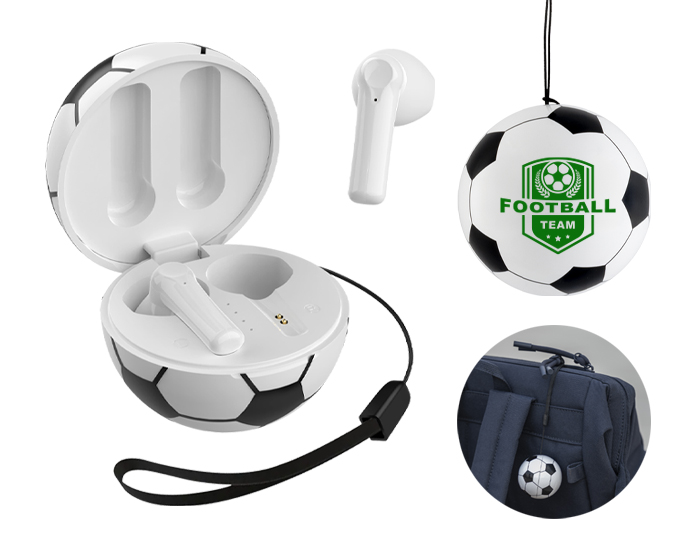 AUDÍFONOS INALÁMBRICOS CON ESTUCHE DE BALÓN DE SOCCER GOAL A2830 BLANCO