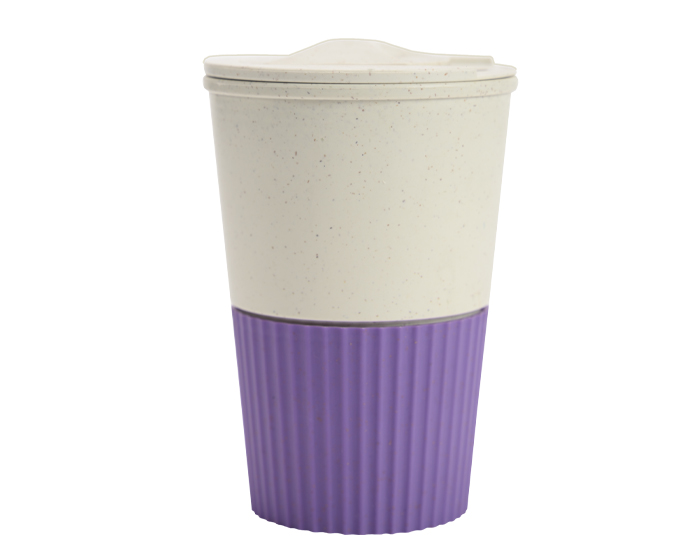 Descripción del producto: Vaso de fibra de trigo, con tapa de rosca y seguro deslizable, cuenta con diseño de manga de color texturizada. CAP. 380 ml. |