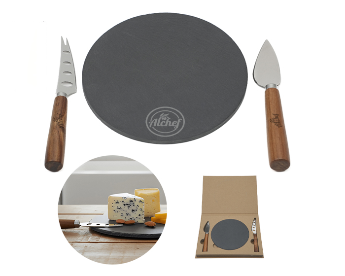 Descripción del producto: Set para quesos y carnes frías. Incluye 2 cuchillos de acero inoxidable con mango de madera de acacia y una base de piedra. Presentación: caja individual |