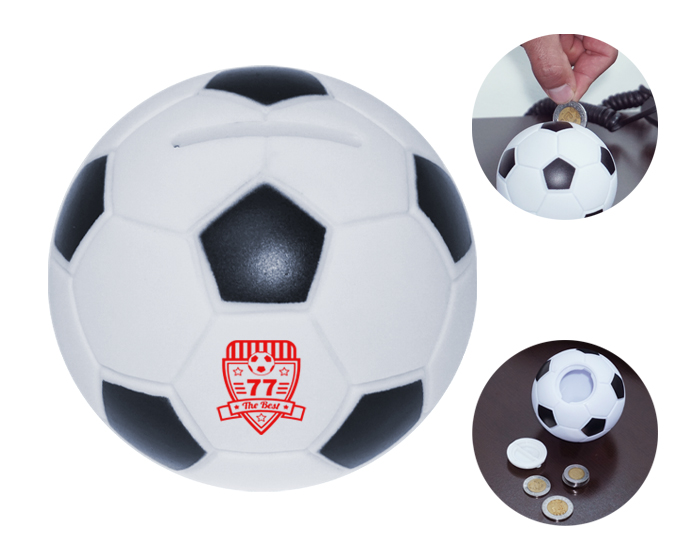 Descripción del producto: Alcancía de plástico en forma de balón de fútbol soccer. Cuenta con tapa giratoria en la parte inferior para poder abrir. |