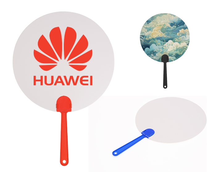 Descripción del producto: Abanico redondo de plástico, con amplia área para impresión, cuenta con mango de color. |