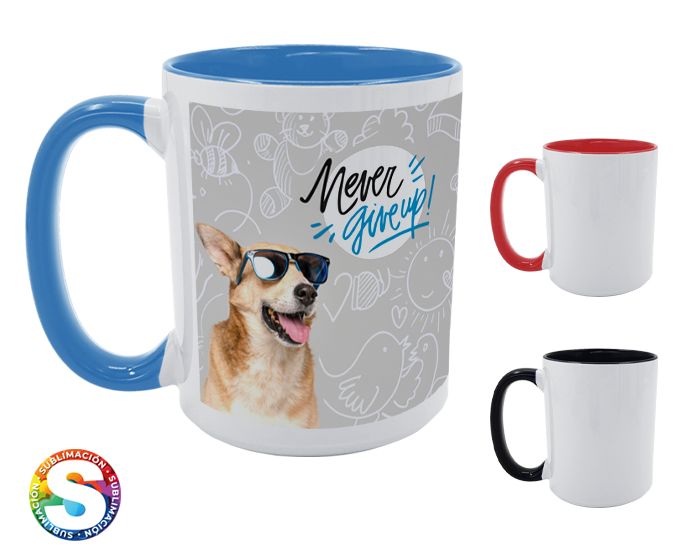 Descripción del producto: Tarro bicolor blanco para sublimación con asa e interior en color diferente. CAP. 445 ml. (15 OZ). Venta en múltiplos de 12. |