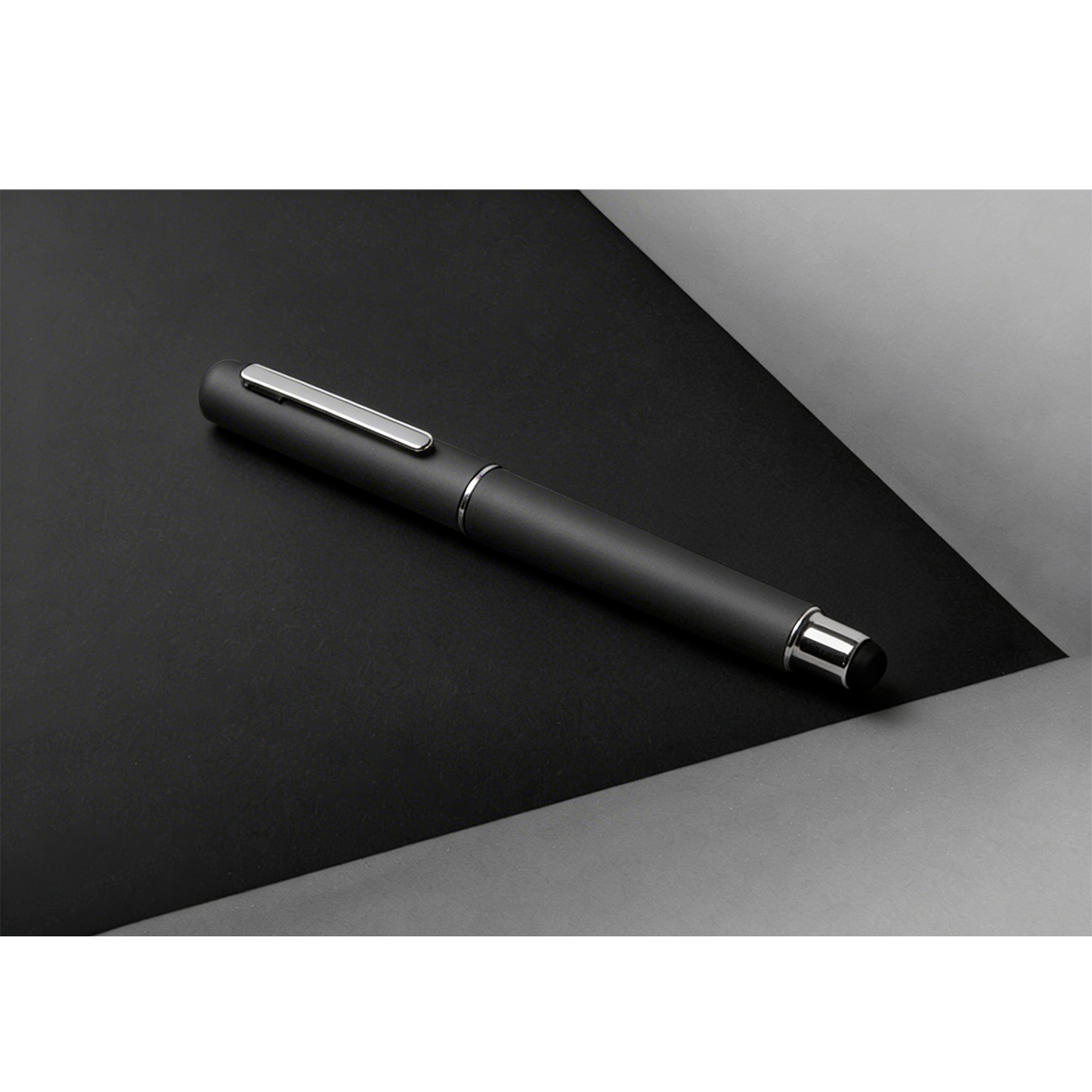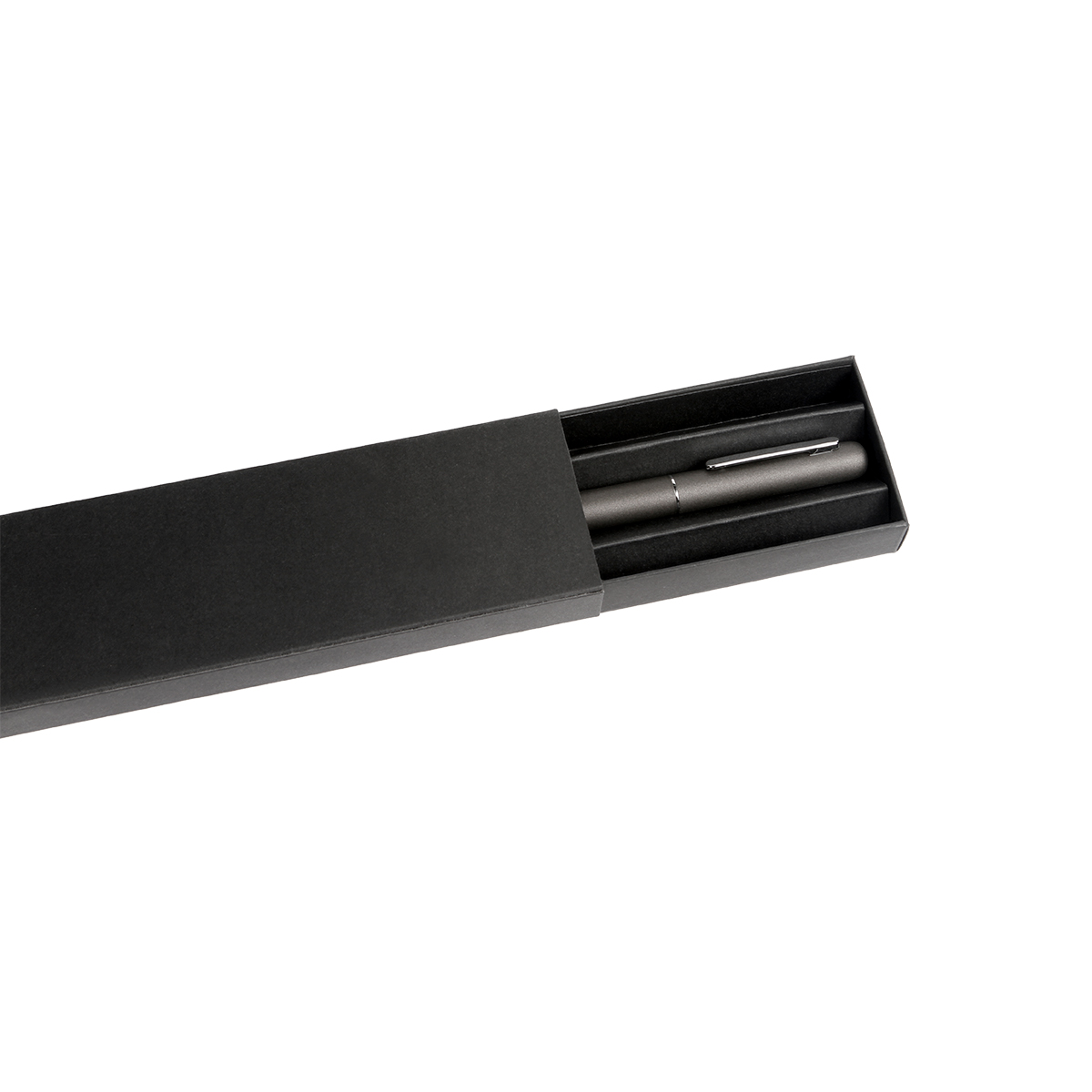 Descripción del producto: Bolígrafo fabricado en aluminio negro cromado y touch en la parte superior. Incluye un estuche individual de cartón, lo que proporciona mayor protección. Utiliza tinta de escritura negra. |