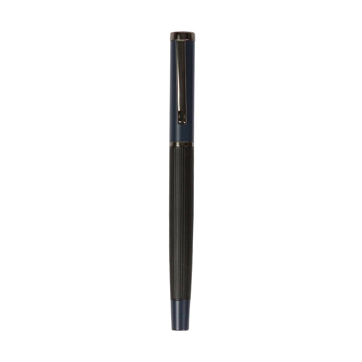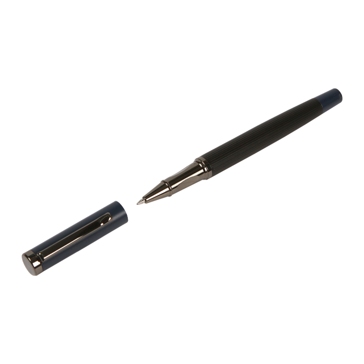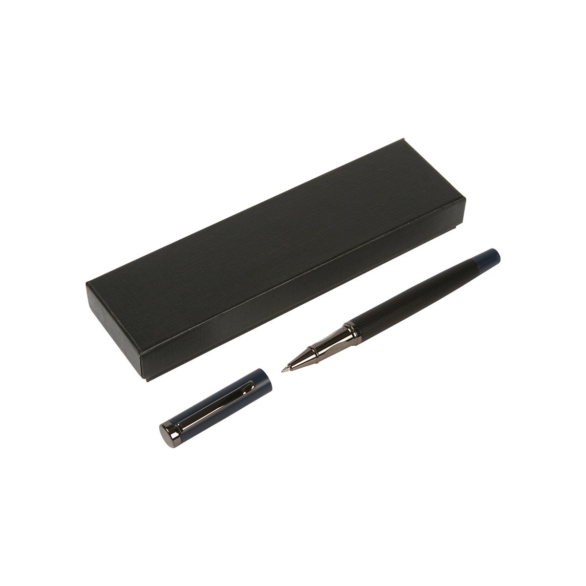 Descripción del producto: Bolígrafo con barril fabricado en acero inoxidable, con detalles en color plateado, tipo roller. Tinta de escritura de gel color azul. Incluye caja de regalo color negro. |