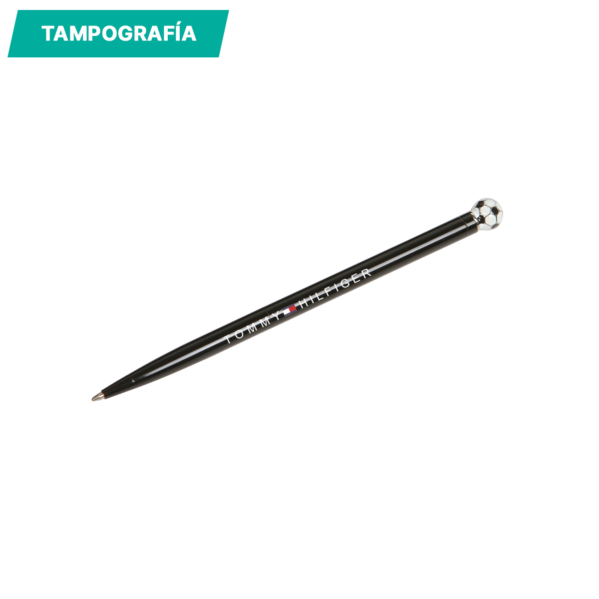 Descripción del producto: Escribe con estilo y precisión gracias a este bolígrafo de acción de giro, con barril fabricado en aluminio resistente y ligero para una experiencia cómoda y duradera. Su acabado en laca le brinda un aspecto brillante, elegante y sofisticado. Diseñado para ofrecer un mecanismo suave y fiable, este bolígrafo combina funcionalidad y estética, convirtiéndose en un accesorio indispensable para profesionales y amantes de la escritura y del futbol, ya que incluye en la parte superior un adorno con forma de balón de futbol, ideal para los amantes de este deporte. |