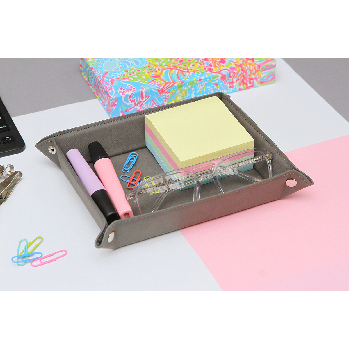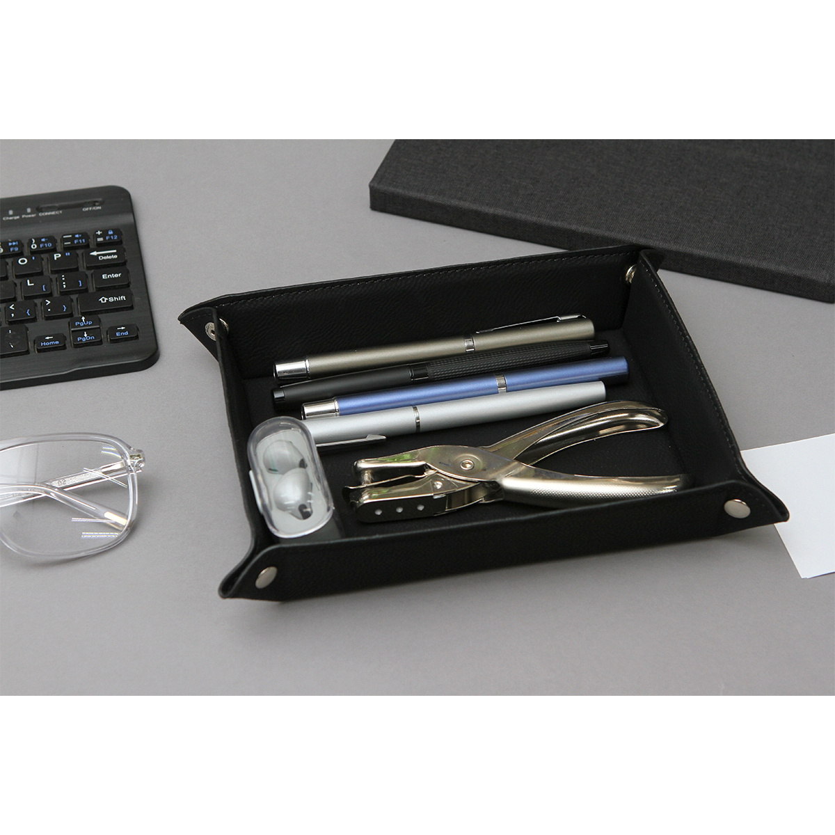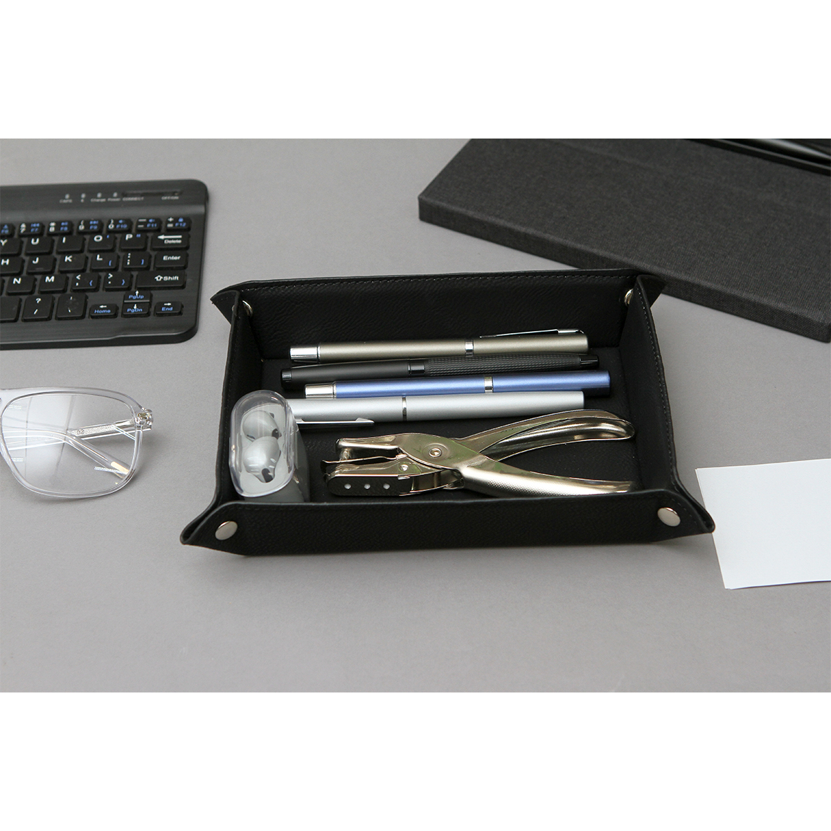 Descripción del producto: Charola organizadora fabricada en curpiel. Multifuncional y perfecta para mantener todo en orden en diferentes espacios. Diseño innovador, materiales duraderos y fácil de limpiar. |