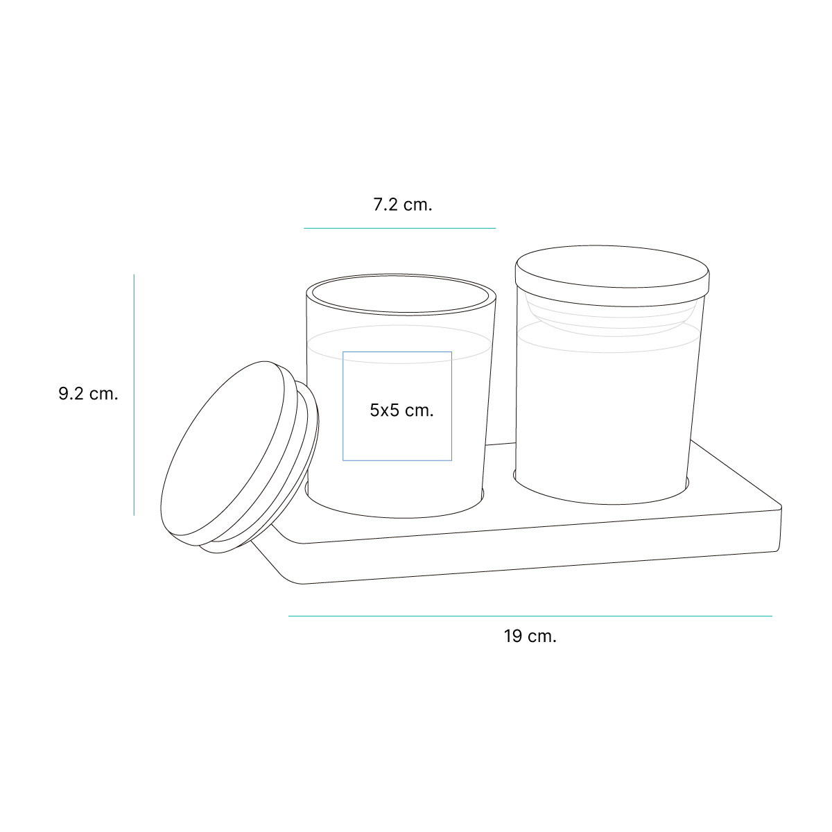 Medida: Base: 19x10 cm. / Velas: 7.2x9.2 cm. Material: - Capacidad: - |
