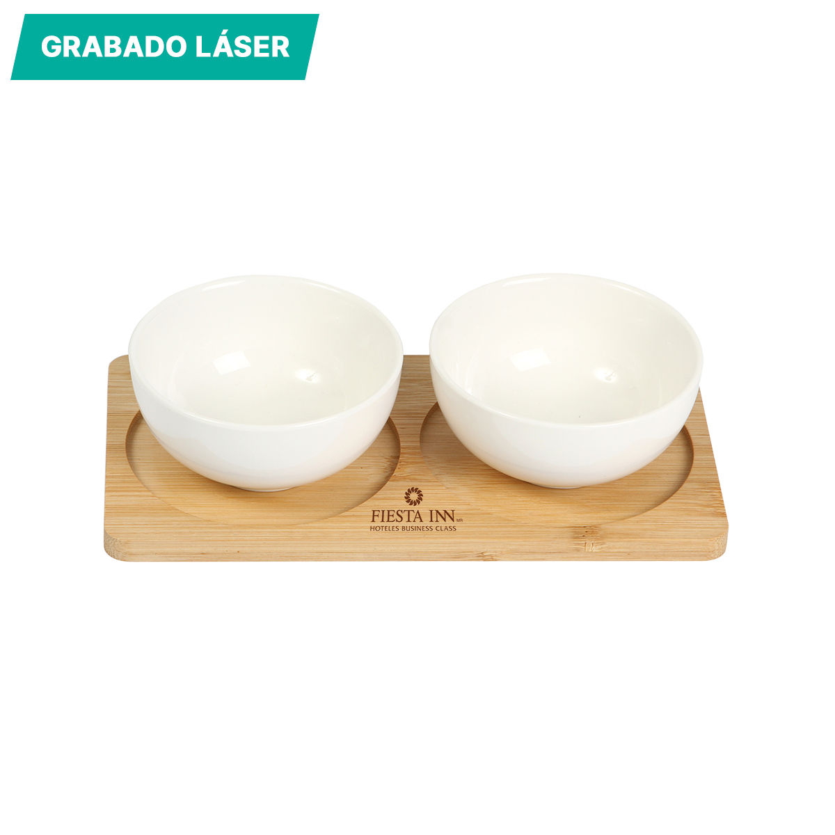 Descripción del producto: Set con dos bowls para alimentos fabricados en cerámica con capacidad de 250 ml, base de madera de bambú adecuada para ambos recipientes. |