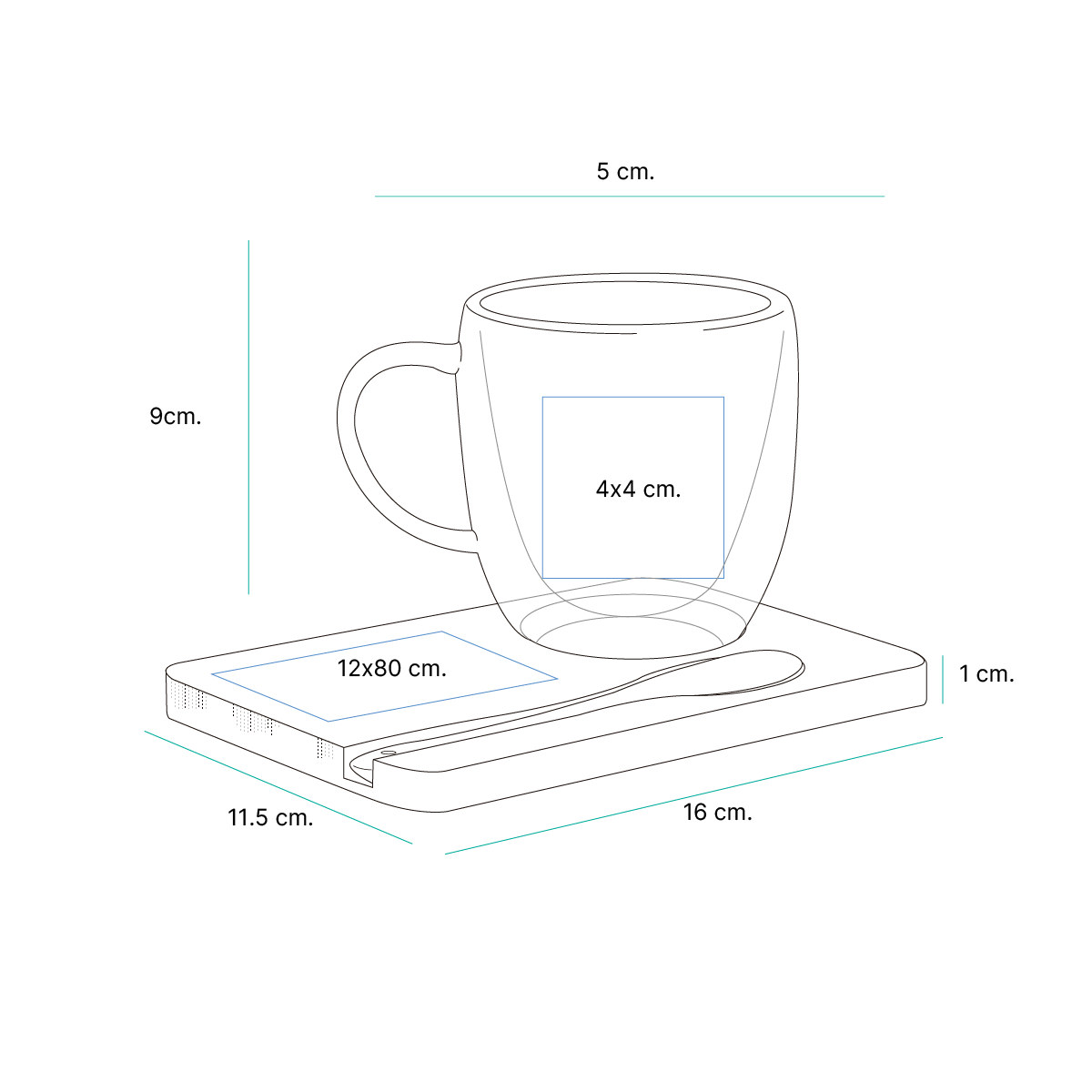 Medida: Taza: 5x9 cm. / Base: 16x11.5x1 cm. Material: - Capacidad: - |