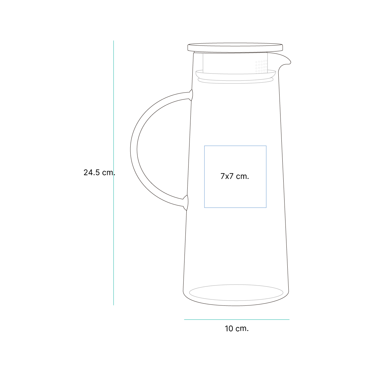 Descripción del producto: Jarra para agua de diseño transparente fabricada en vidrio de borosilicato. Cuenta con capacidad de 1,800 ml, y peso de 430g. Inlcuye tapa en color metálico, de acero inoxidable, y asa. |