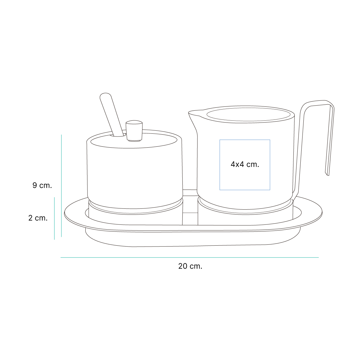 Descripción del producto: Juego de café, fabricado en cerámica y acero inoxidable. Incluye taza para crema o leche con capacidad de 300 ml, azucarera (con tapa) con capacidad de 200 ml y cuchara. |