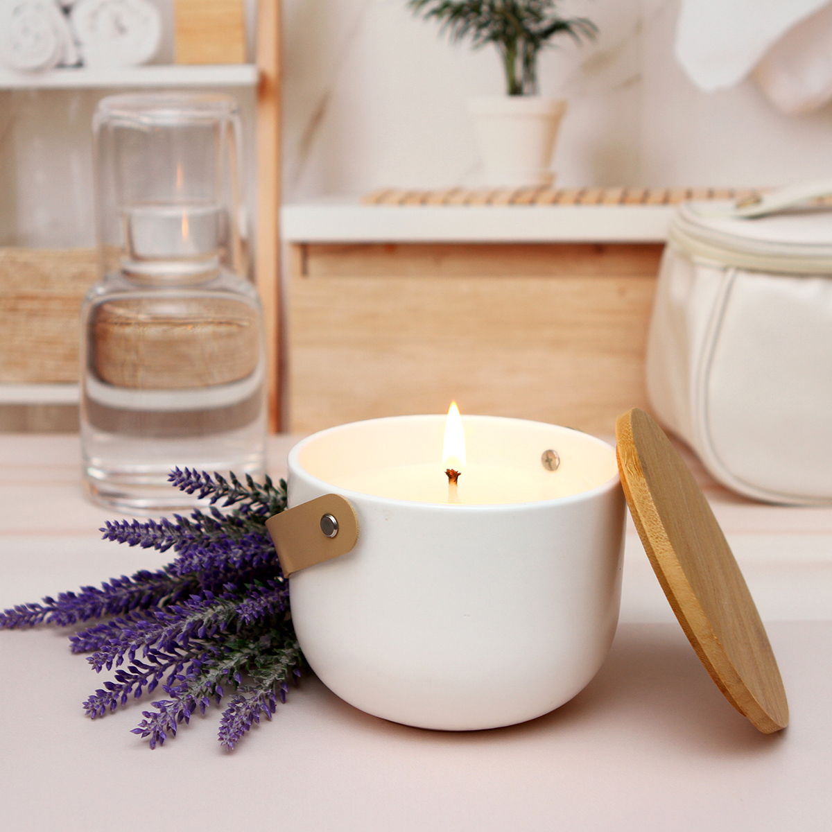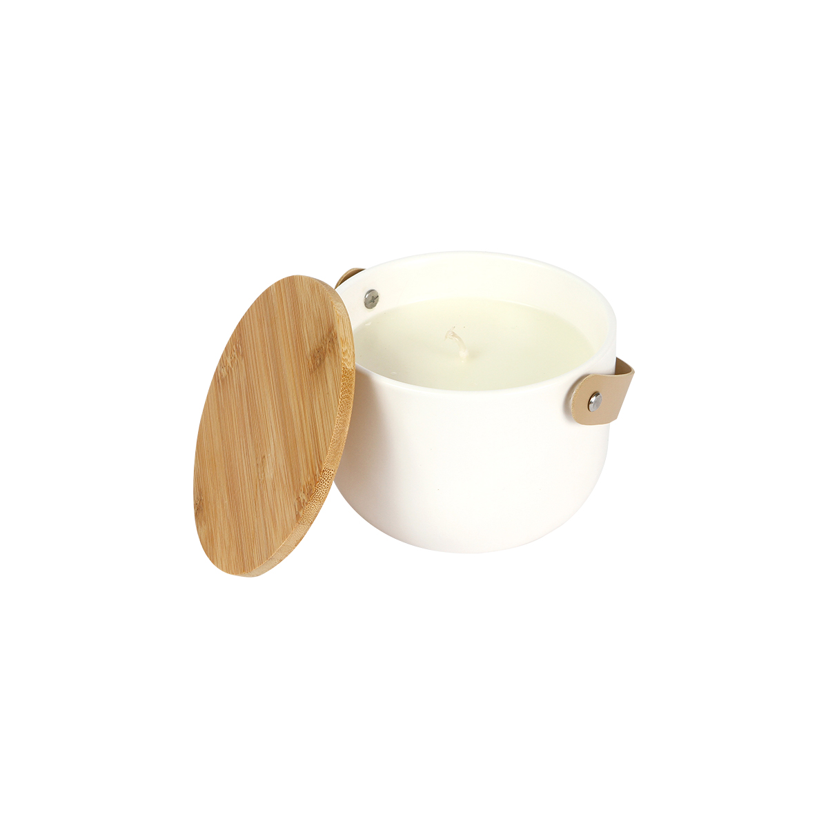 Descripción del producto: Vela fabricada con cera de soja con esencia de limón y con contenedor de cerámica, su tapa de bambú le agrega un delicado detalle en madera que contrasta con el color blanco de la cerámica. Incluye una agarradera fabricada de curpiel. Su diseño sofisticado hace que sea ideal tanto para el uso en hogares como en ambientes profesionales como, oficinas o boutiques. Incluye caja de cartón individual. |