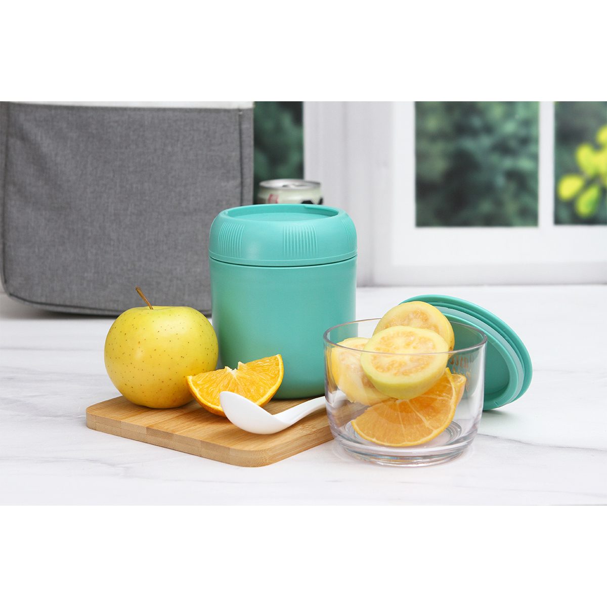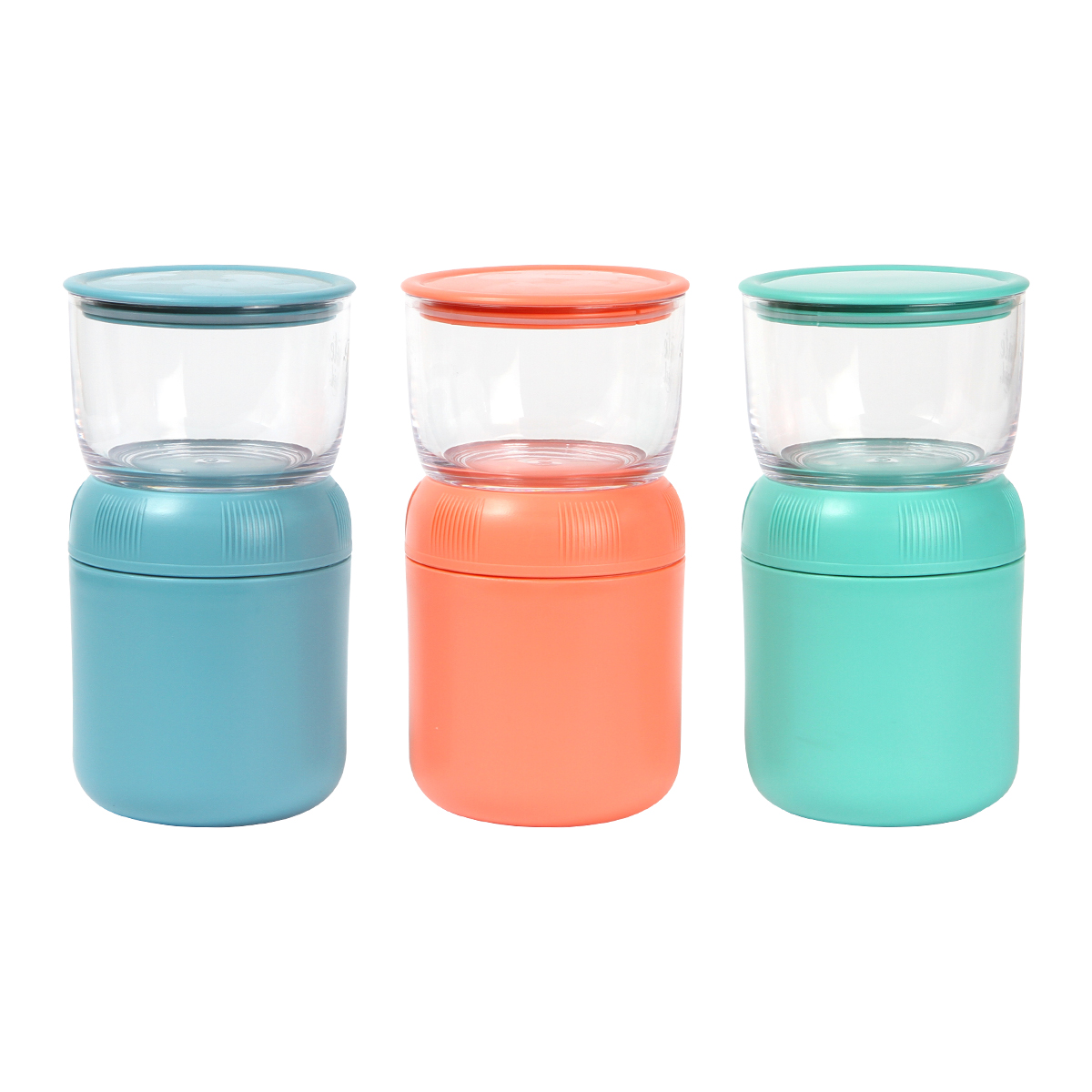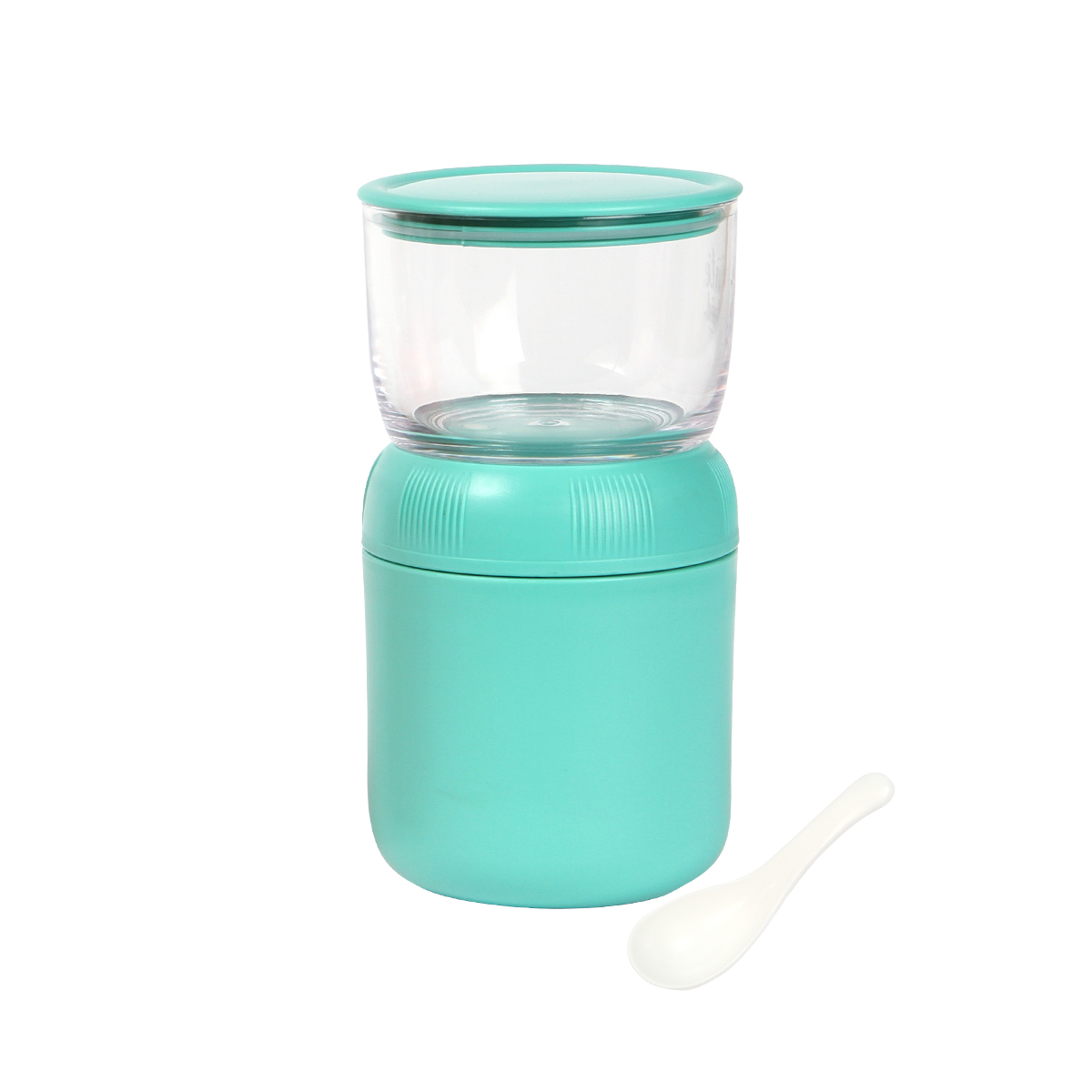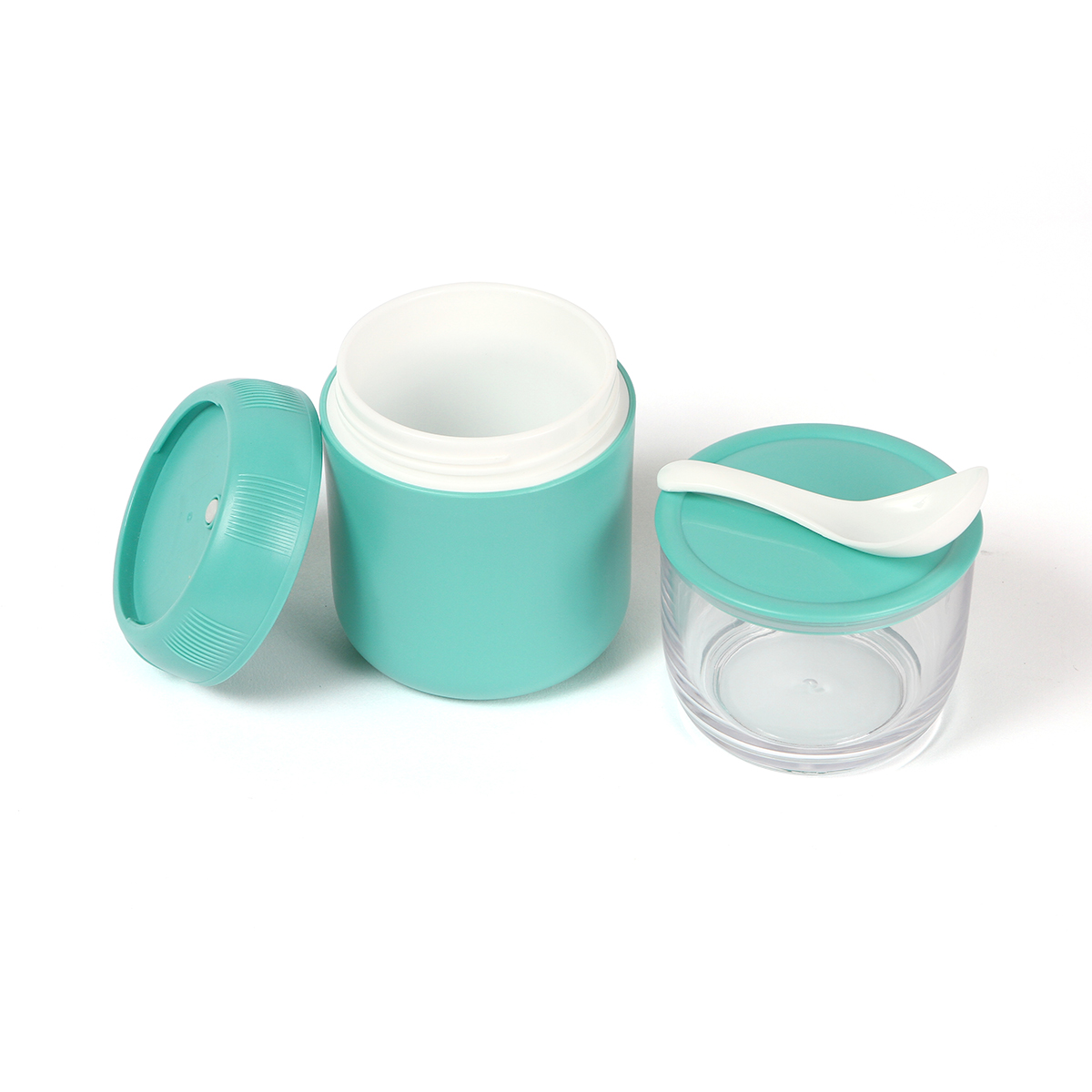 Descripción del producto: Contenedor de alimentos fabricado en polipropileno (PP). Incluye dos recipientes pequeños, uno de ellos traslúcido y una cuchara. Capacidad por ambos contenedores es de 710 ml. Contenedor grande: 380 ml. Contenedor pequeño: 330 ml. |