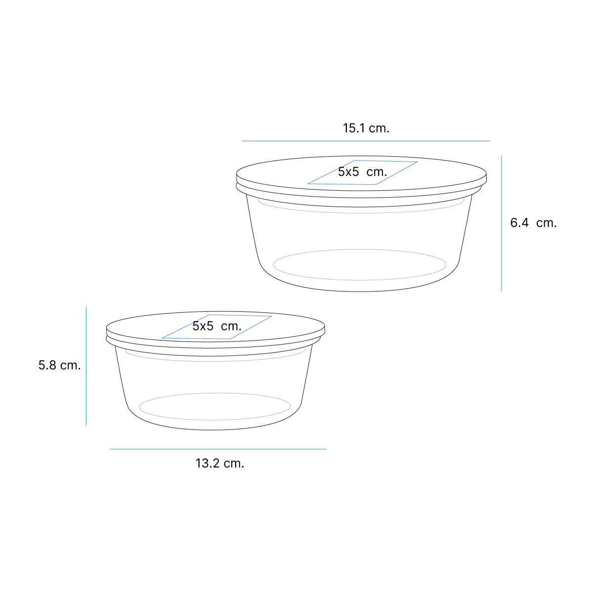 Medida: 13.2 Diametro: 5.8 cm (400ml) | 15.1 Diamentro: 6.4 cm. (620ml) Material: - Capacidad: - |