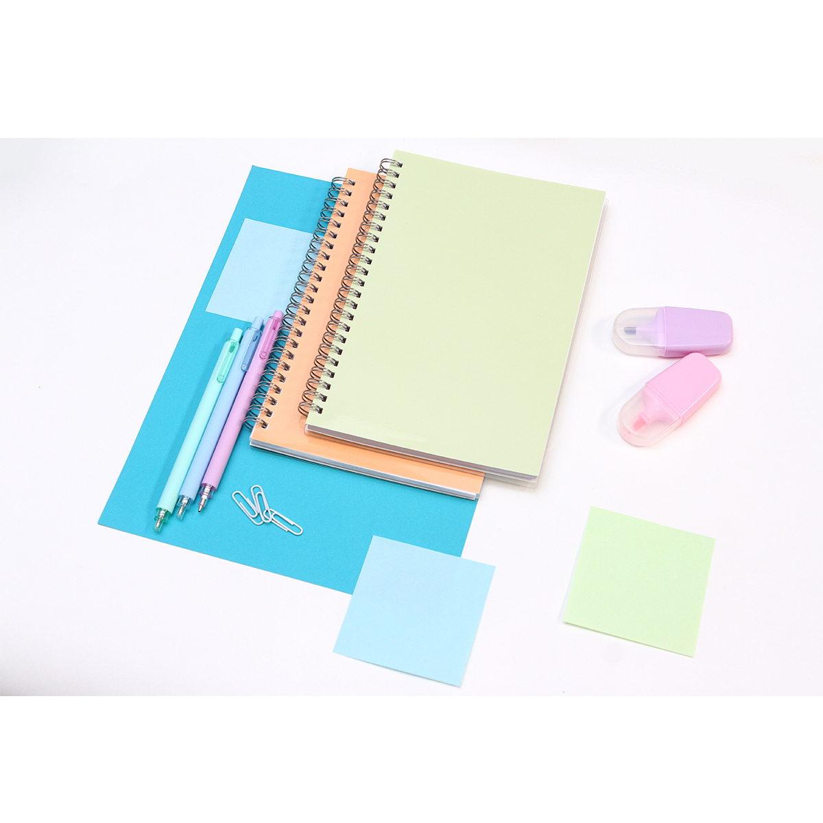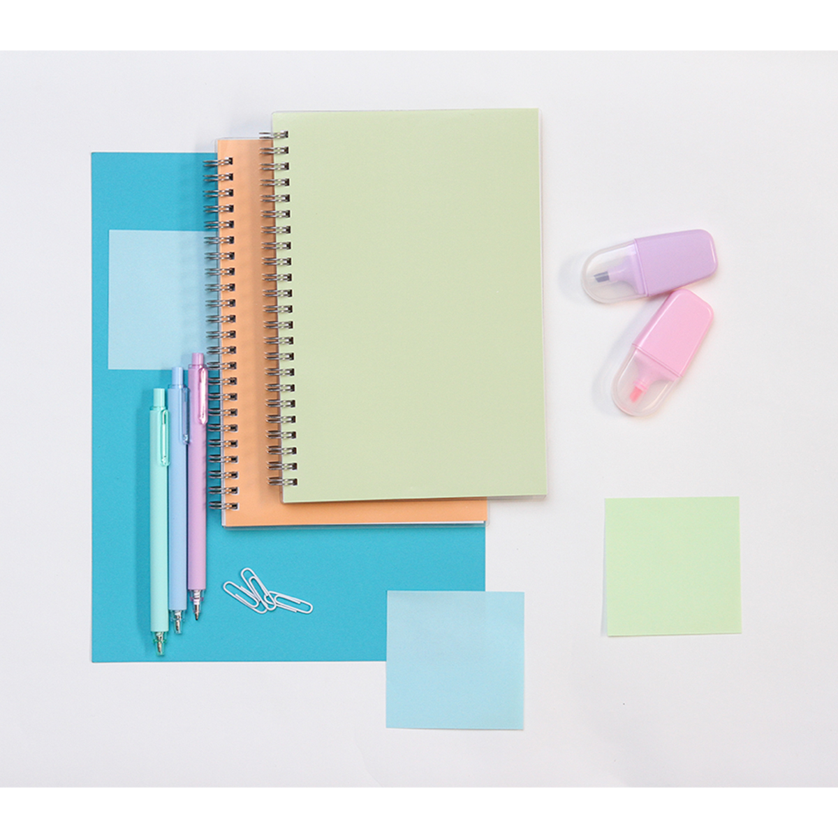 Descripción del producto: Libreta de tamaño A5 de espiral con cubierta fabricada en PET transparente, esquinas redondeadas y diseño elegante. Incluye 80 hojas con líneas impresas en papel blanco de 70 g, más páginas de color en papel estucado de 157g al inicio y al final. El espiral cromado de 23 piezas le brinda una mayor durabilidad. |