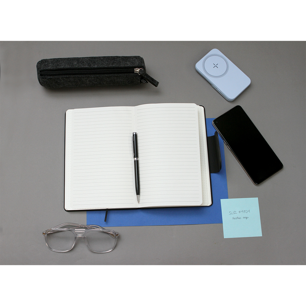 Descripción del producto: Organiza tus ideas con estilo y seguridad gracias a esta elegante libreta de 80 hojas con pasta dura, fabricada en cuero sintético (PU) de alta calidad. Su diseño en color negro le da un toque sobrio y profesional, ideal para entornos ejecutivos o académicos. Cuenta con un práctico cierre de solapa con imán, que protege tus notas, y una placa metálica decorativa que añade un detalle distintivo y moderno. Perfecta para reuniones, apuntes personales o como regalo corporativo. |