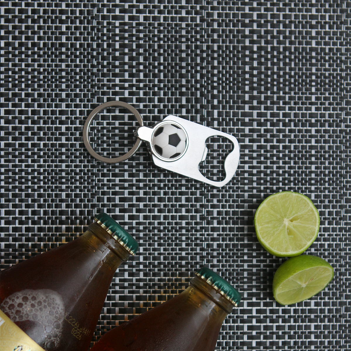 Descripción del producto: Llavero fabricado en acero inoxidable con destapador integrado y detalle decorativo de balón de fútbol. Funcional, duradero y con un toque deportivo ideal para aficionados. |
