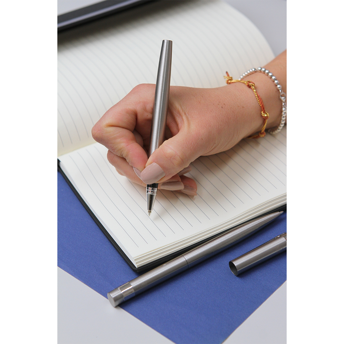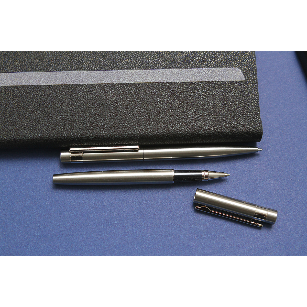 Descripción del producto: Set ecológico de dos bolígrafos fabricados en acero inoxidable reciclado, incluye caja de cartón, una roller pen y una ball pen. Su estructura robusta garantiza un uso prolongado y cómodo en tu rutina diaria. Opción responsable y estilizada para aquellos que buscan productos duraderos y respetuosos con el medio ambiente. |
