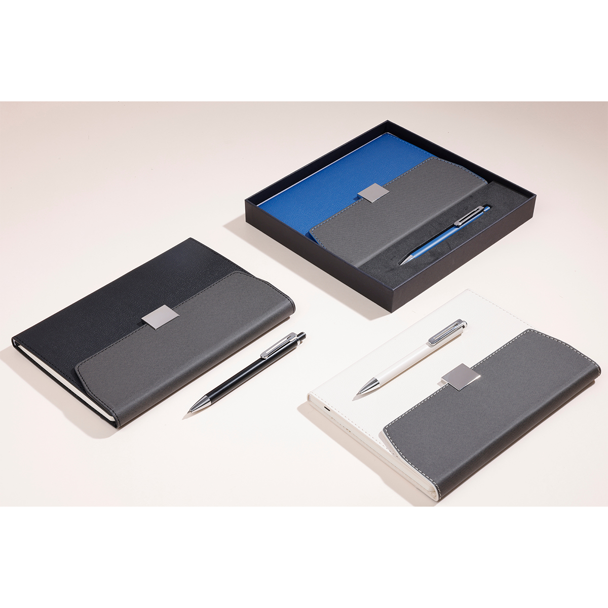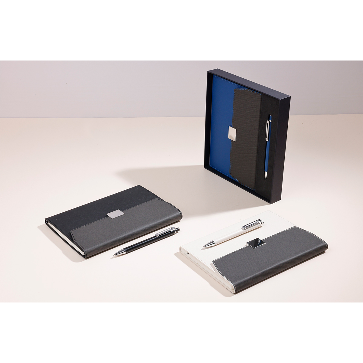 Medida: Caja: 21,2x22,4x3 cm. | Libreta: 15,2x21,2 cm. | Bolígrafo: 13,9x1,35 cm. Material: - Capacidad: - |