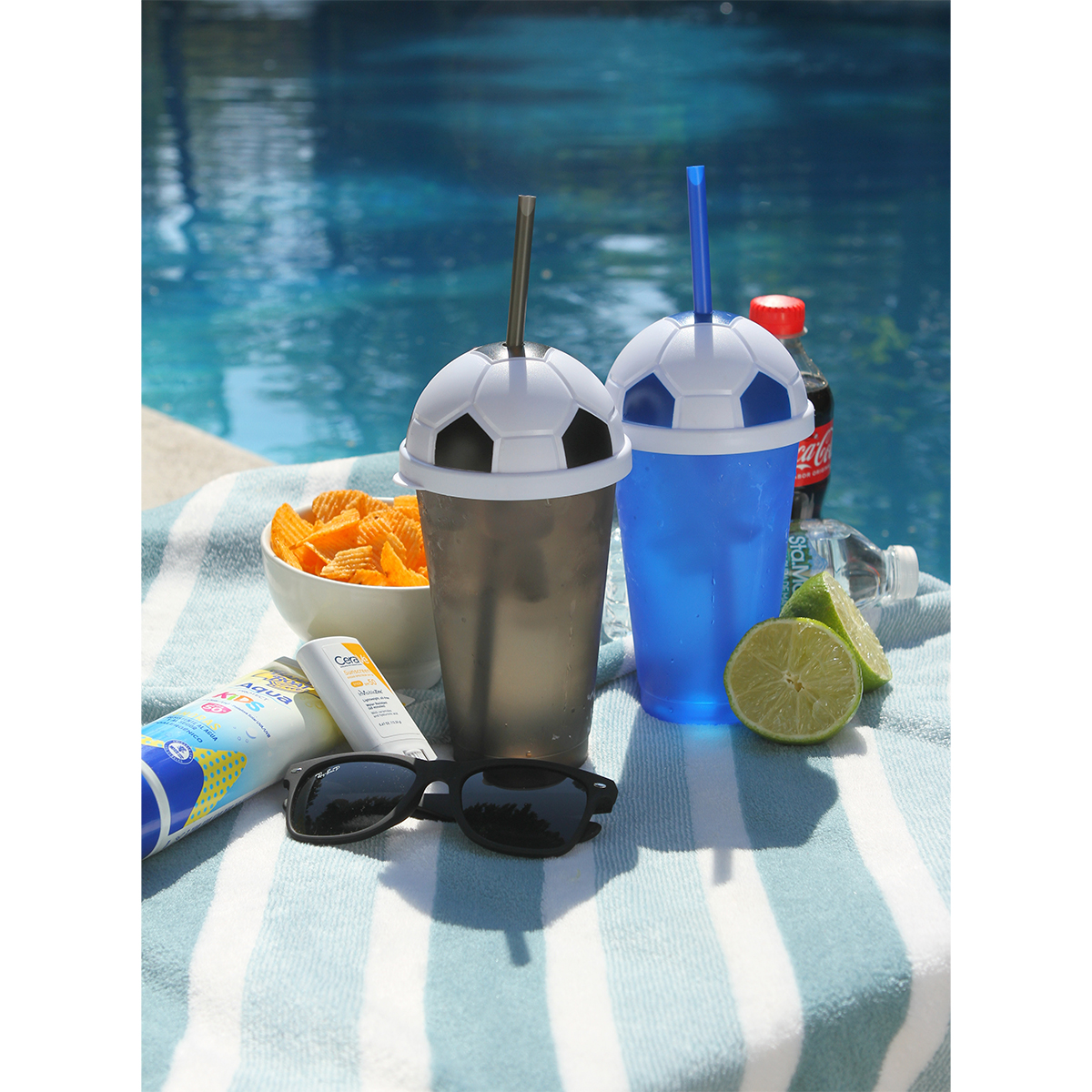 Descripción del producto: Este vaso de una pared está fabricado en polipropileno, con una estructura ligera y resistente que mantiene su forma. Su cuerpo presenta un diseño cilíndrico de superficies lisas y bordes definidos. Cuenta con una capacidad de 600 ml, ofreciendo un formato amplio y estable para contener líquidos. Incluye una tapa en forma de balón de fútbol, diseñada como una pieza sólida y decorativa que se ajusta al borde del vaso. La tapa integra un popote, alineado de forma central, manteniendo una estructura práctica y bien definida dentro del conjunto. |