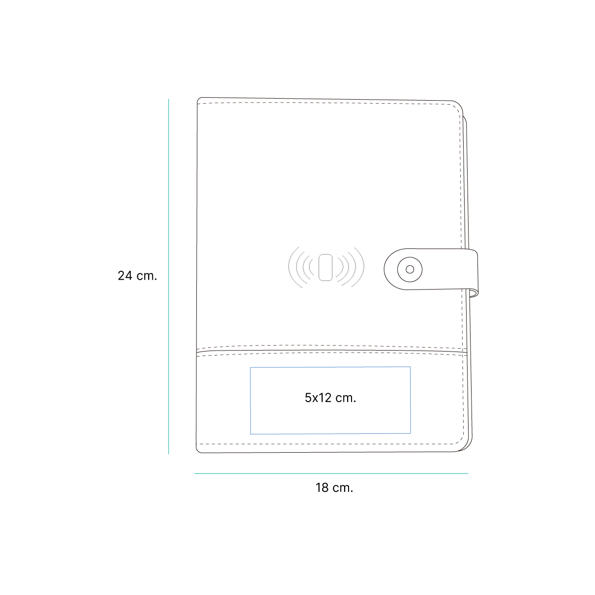 Descripción del producto: Libreta con cargador inalámbrico y power bank de 8,000 mAh, con compartimentos para almacenaje, porta bolígrafos, porta tarjetas y sujetadores de cables. La libreta cuenta con 90 hojas de 100g. |
