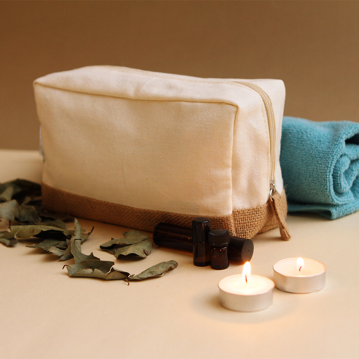 Descripción del producto: Cosmetiquera bi-tono fabricada en algodón y yute; con cierre superior y gran espacio para impresión. Tiene un gran espacio para satisfacer sus necesidades de almacenamiento. |
