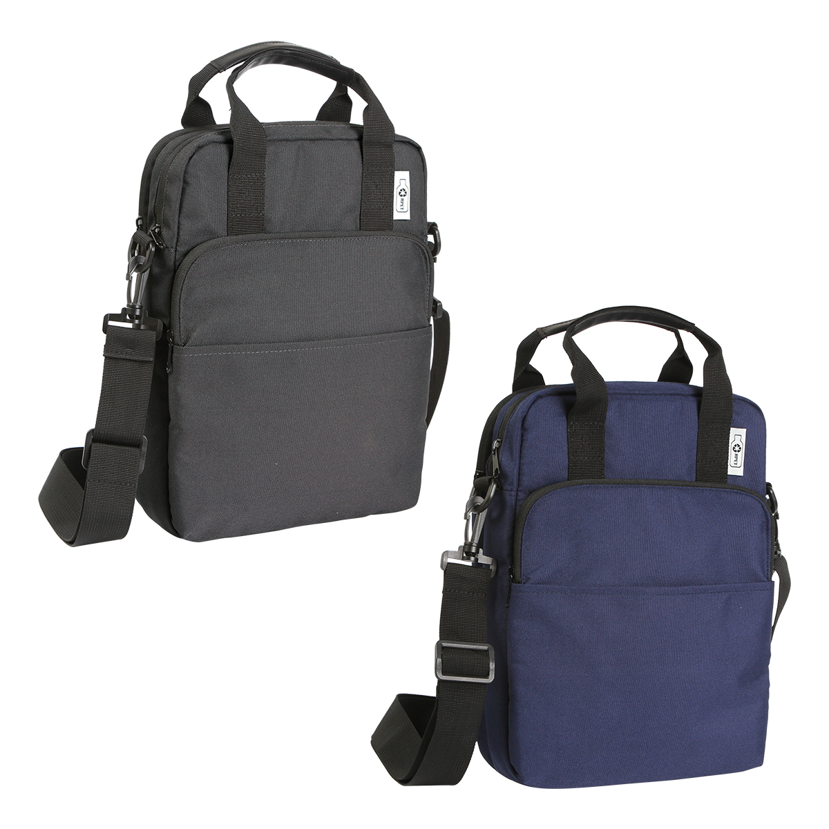 Descripción del producto: Bolsa para laptop fabricado en poliéster y RPET. cuenta con dos compartimentos, correa de hombro y doble asa. |
