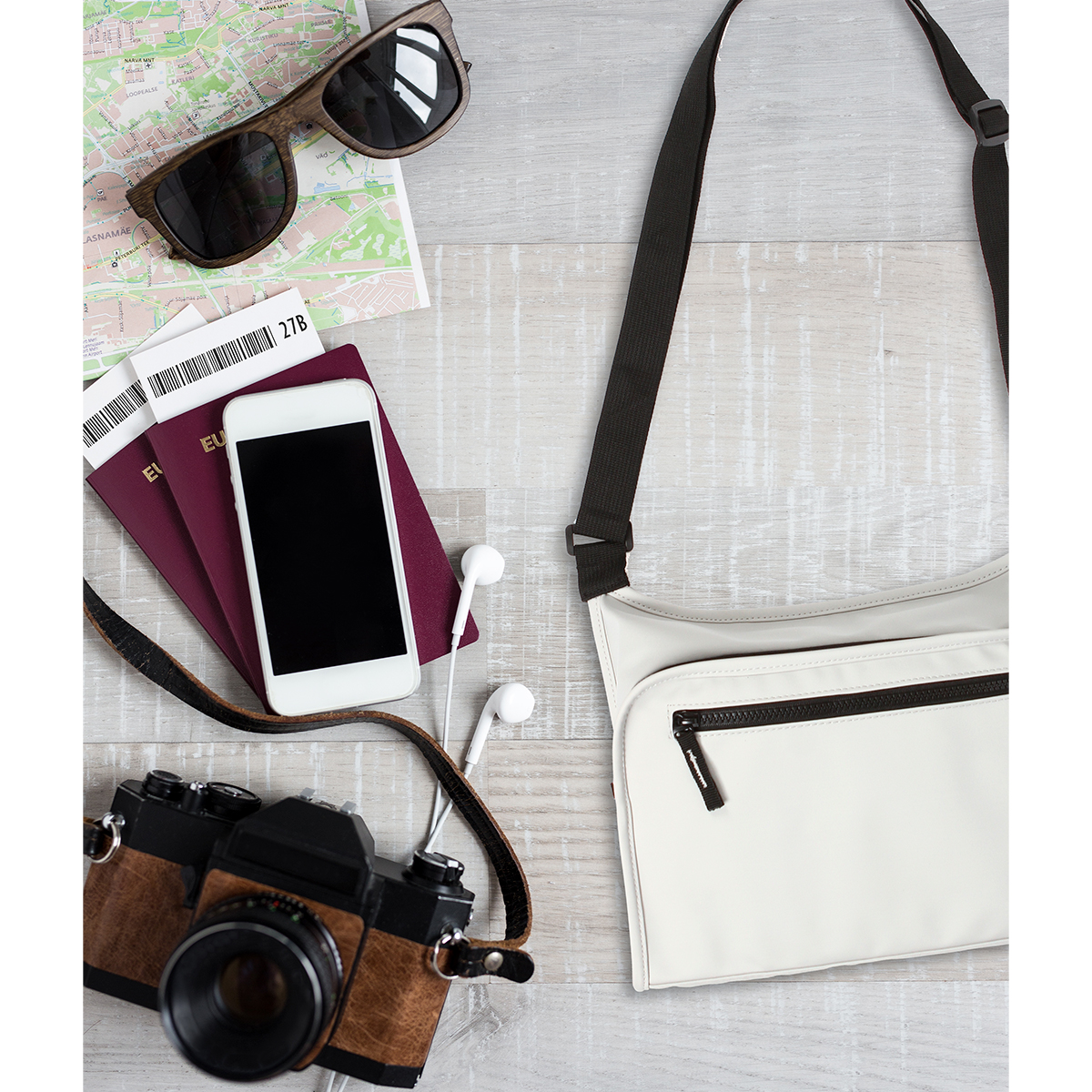 Descripción del producto: Bolsa multiusos fabricada en PU y forro de poliéster 210D. Un bolsillo principal con cremallera, pequeño bolsillo interior con cremallera; bolsillo frontal con cremallera; bolsillo trasero con cremallera; correas de hombro ajustables. |