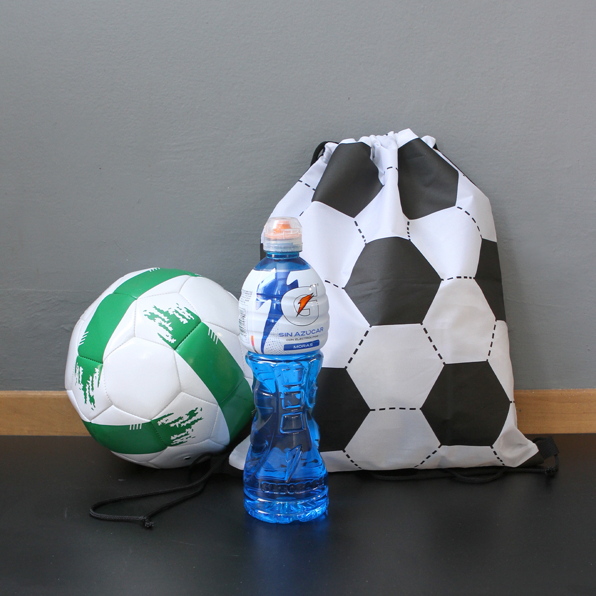 Descripción del producto: Morral fabricado en poliéster con un compartimento principal con correas laterales, las cuales ayudan a cerrar el mismo. Es una bolsa ligera y práctica con un llamativo print de balón de fútbol, perfecta para uso diario o llevar tus esenciales con estilo deportivo. |