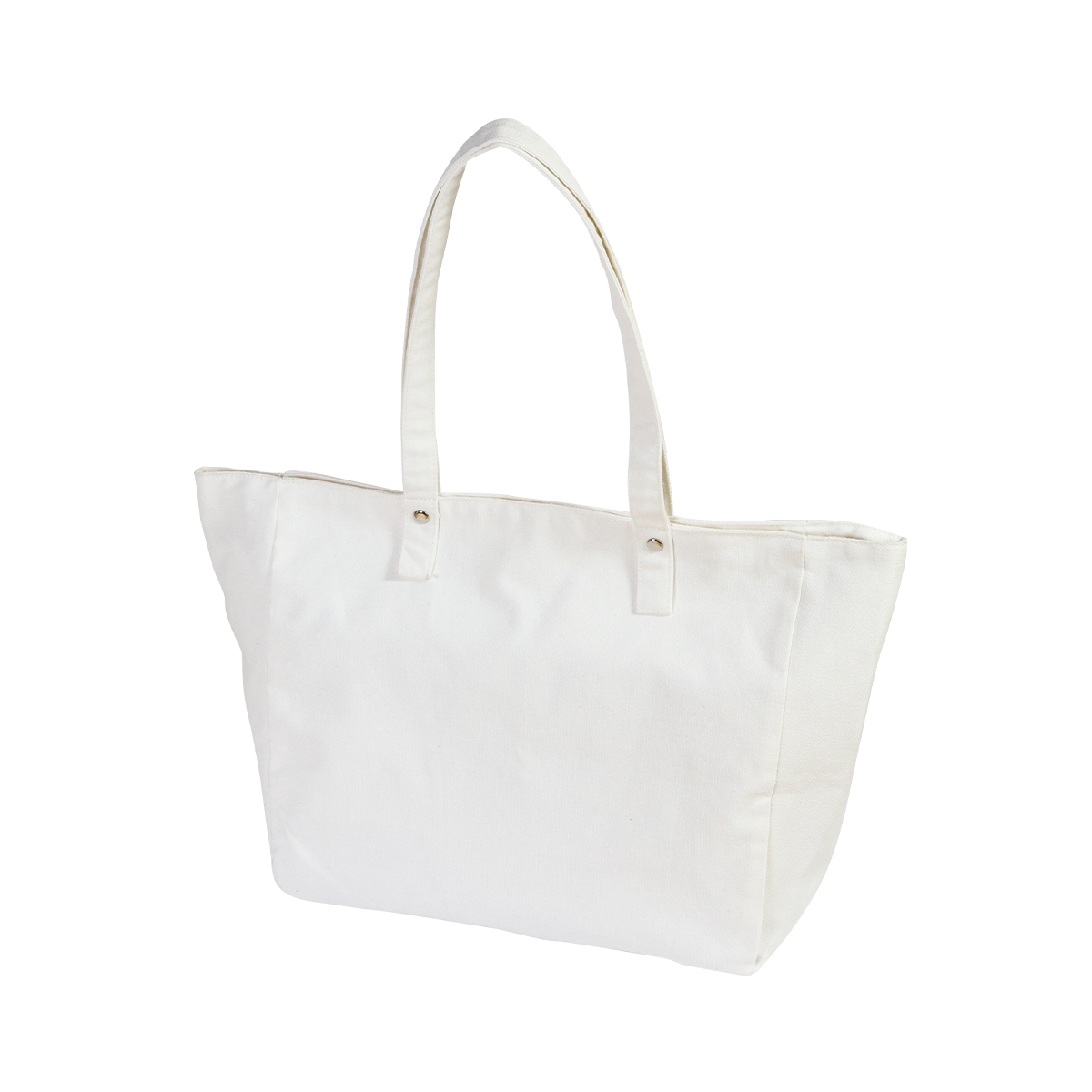 Descripción del producto: Bolsa tipo tote fabricada en poliéster y algodón. Cuenta con un compartimento principal de acceso amplio y dos asas largas superiores sujetas mediante remaches metálicos que aportan mayor resistencia. Su diseño ligero y flexible permite transportar distintos artículos de uso diario. Las costuras reforzadas ayudan a mantener la forma de la bolsa y brindan mayor durabilidad para el uso cotidiano. |
